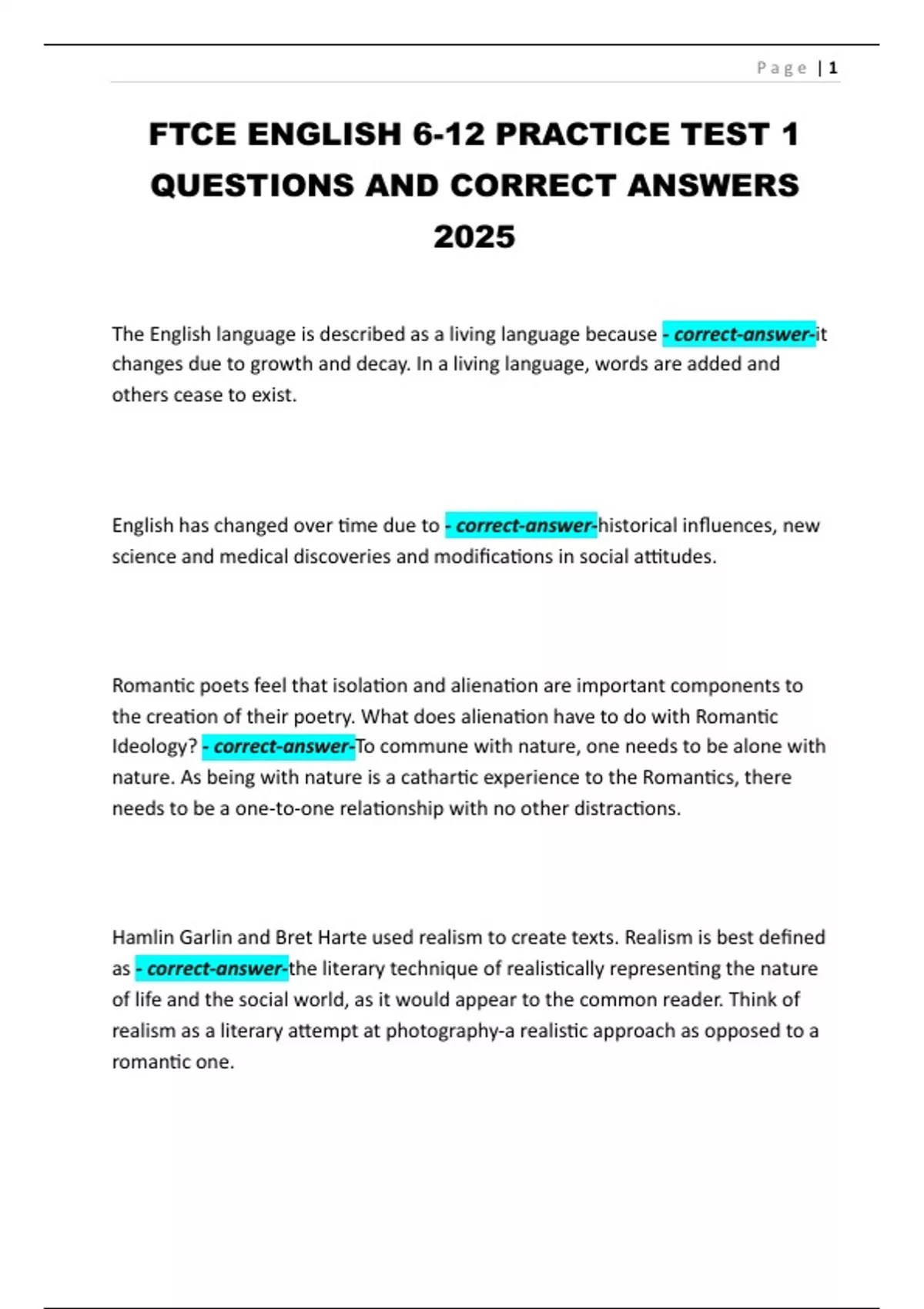 FTCE ENGLISH 6-12 PRACTICE TEST 1