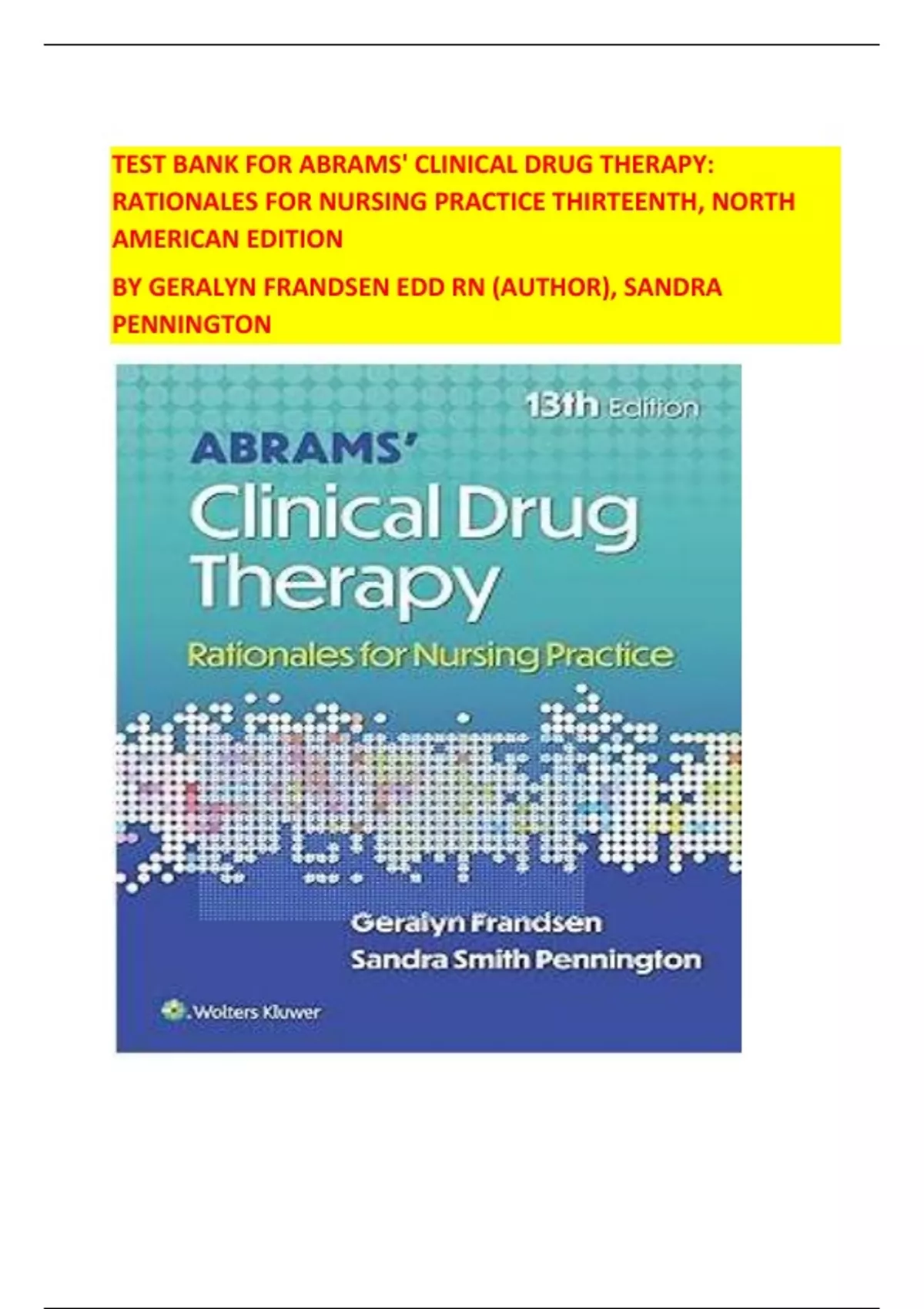 ,TEST BANK FOR ABRAMS' CLINICAL DRUG THERAPY: