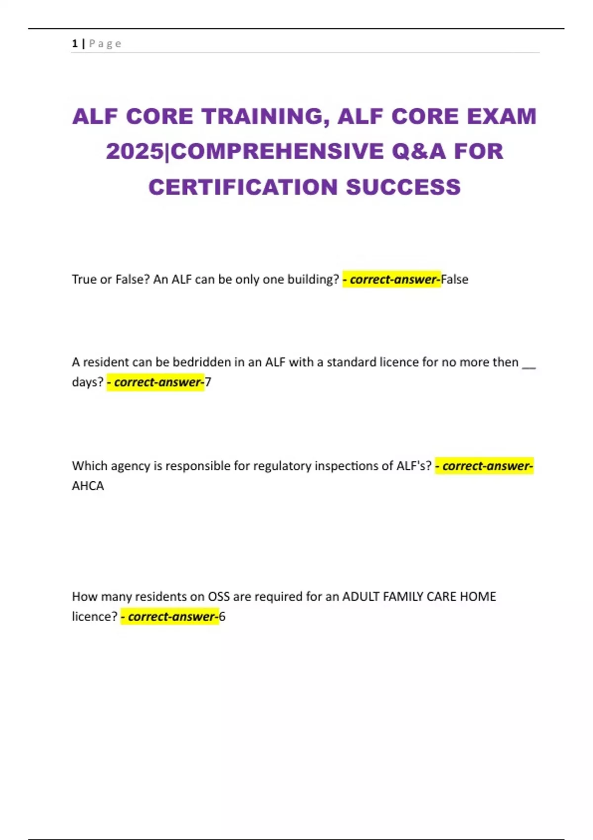 ALF CORE TRAINING, ALF CORE EXAM 2025|COMPREHENSIVE Q&A FOR CERTIFICATION SUCCESS