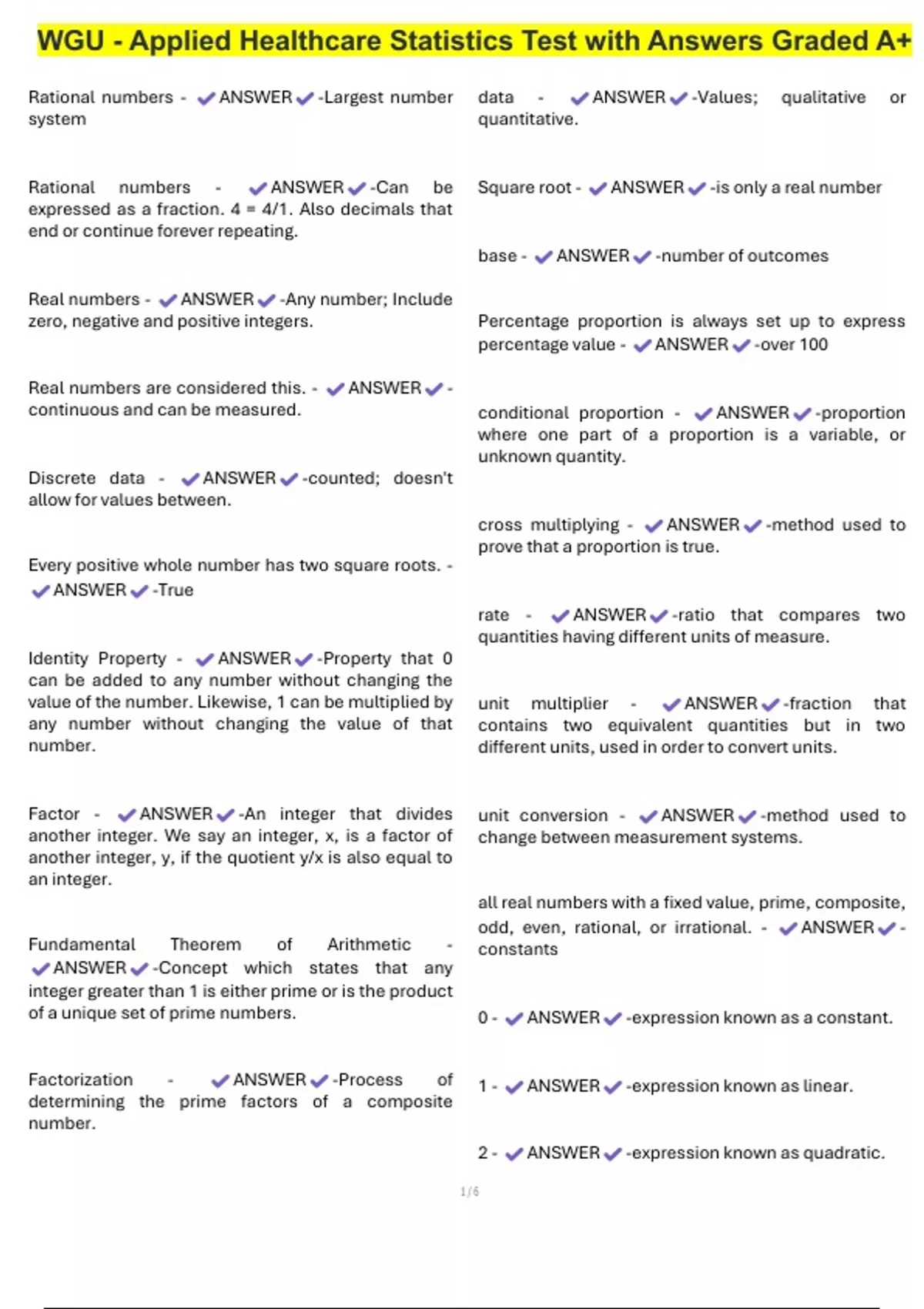 , WGU - Applied Healthcare Statistics Test with Answers Graded A+