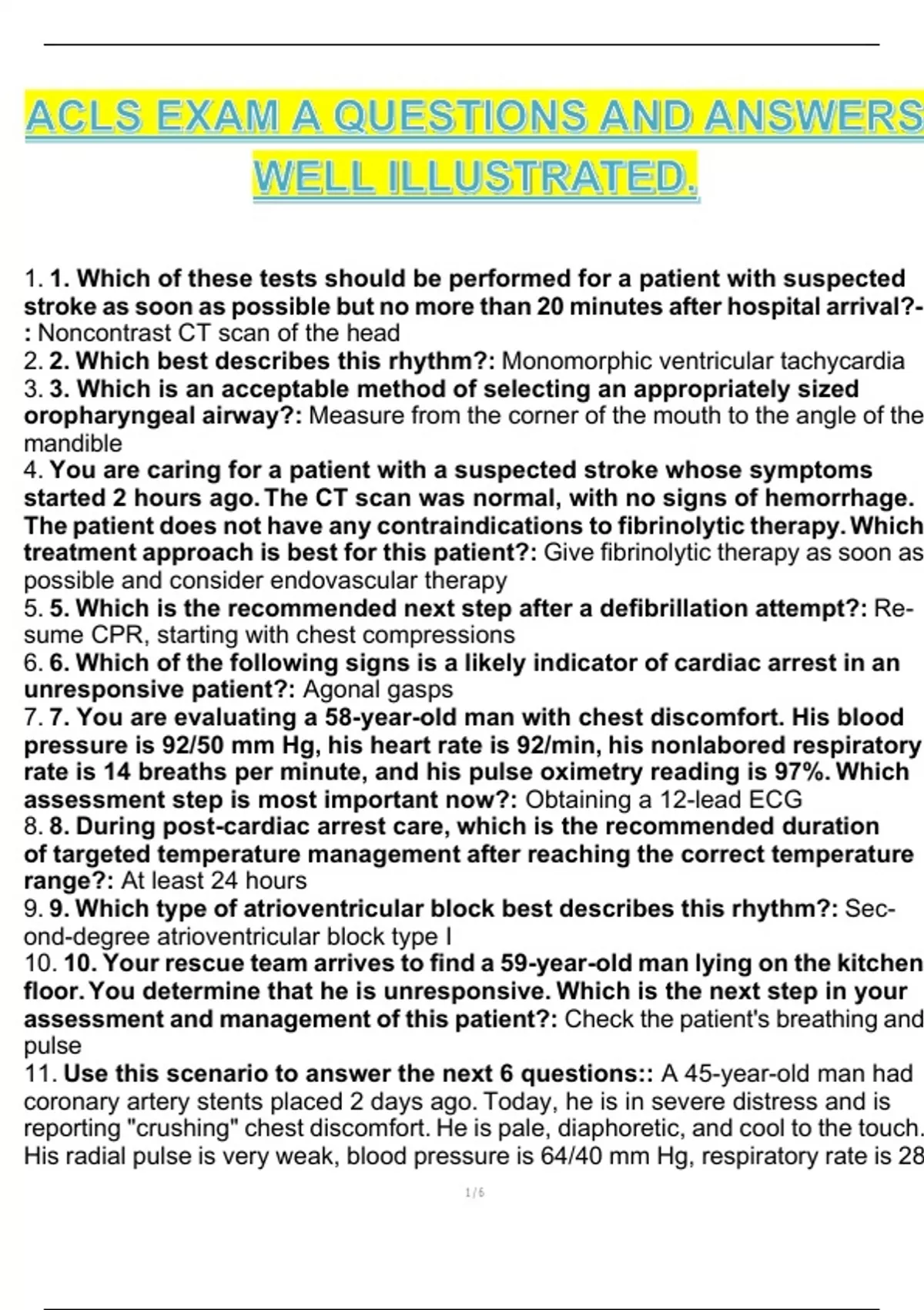 ACLS EXAM A QUESTIONS AND ANSWERS
