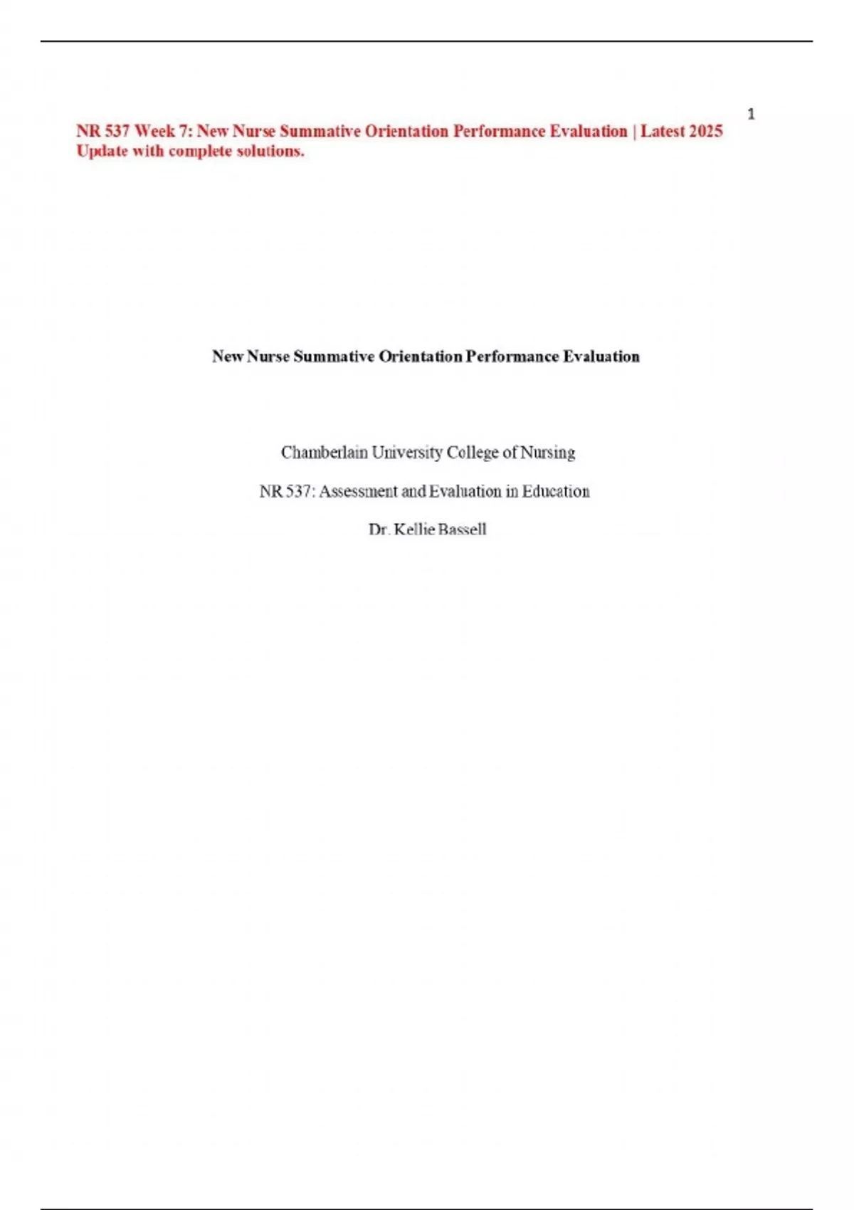 NR 537 Week 7: New Nurse Summative Orientation Performance Evaluation | Latest 2025 Update with complete solutions.