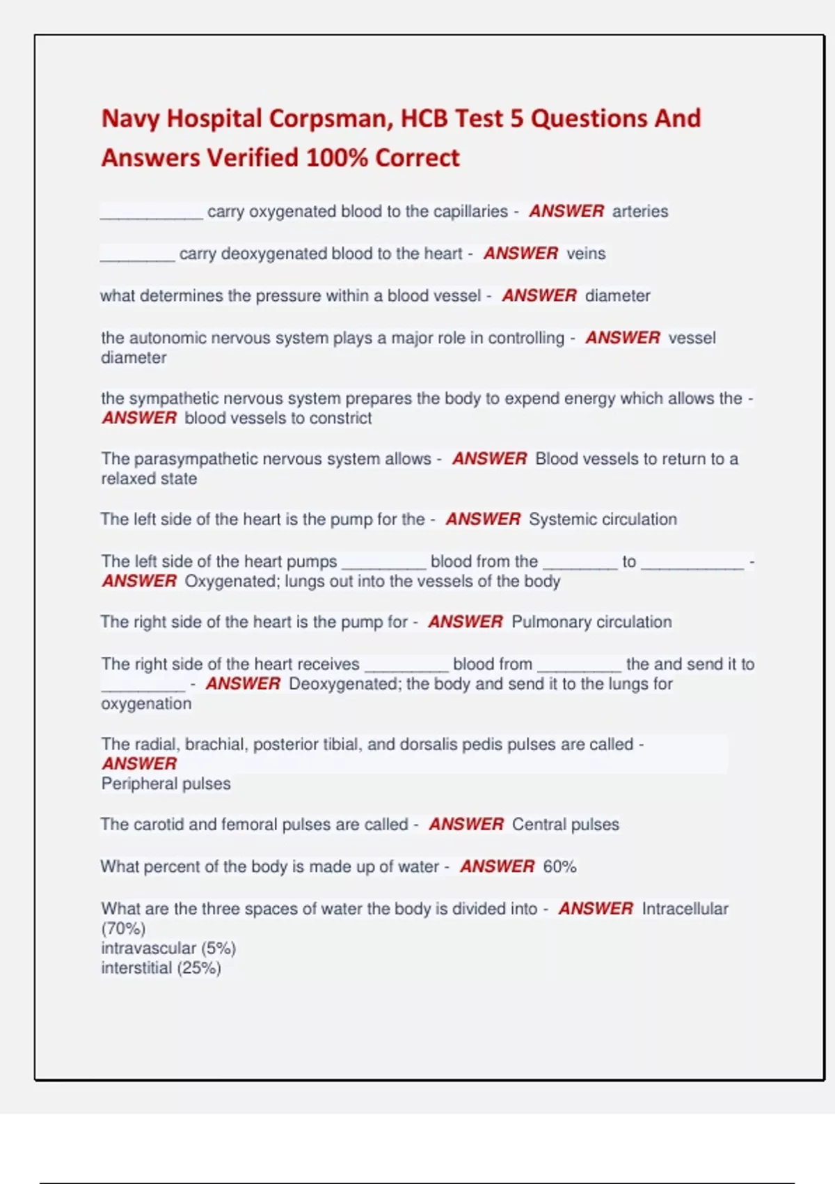 The blood must be capable of carrying - ANSWER Oxygen and carbon dioxide
