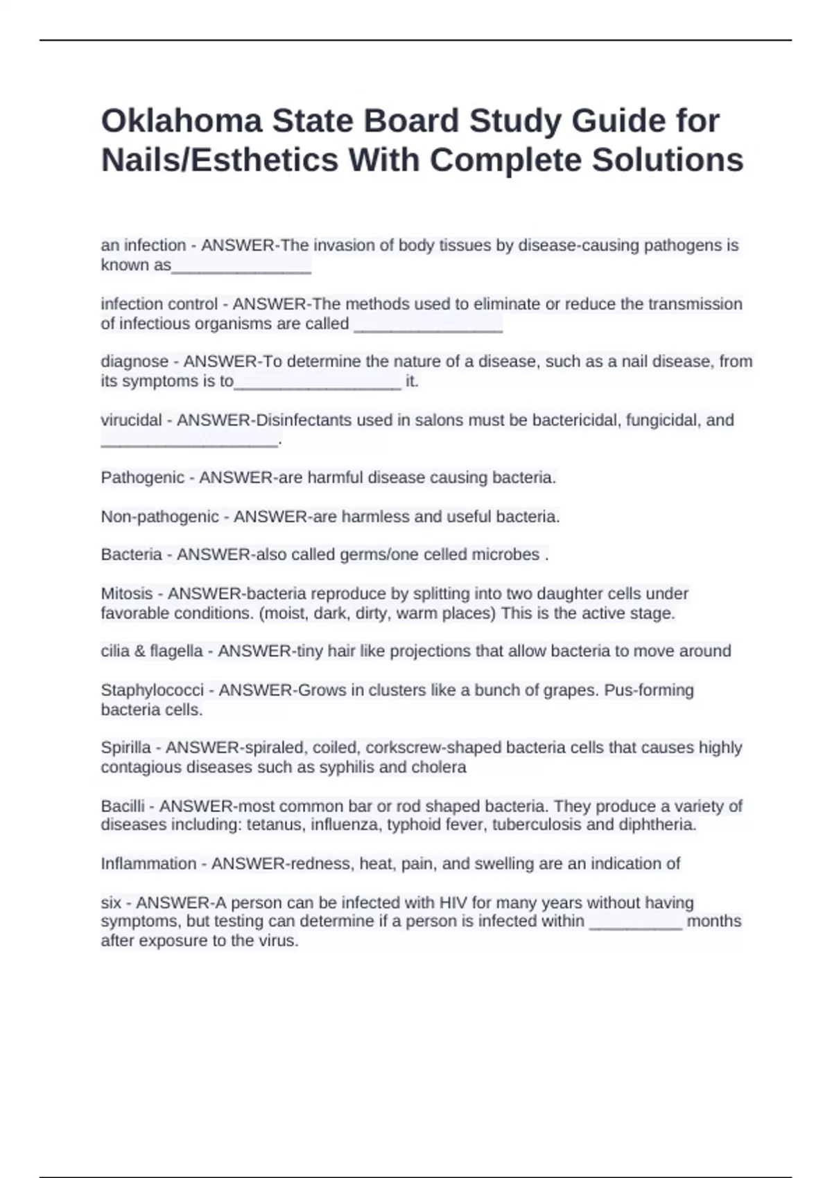 Bacteria - ANSWER-also called germs/one celled microbes .