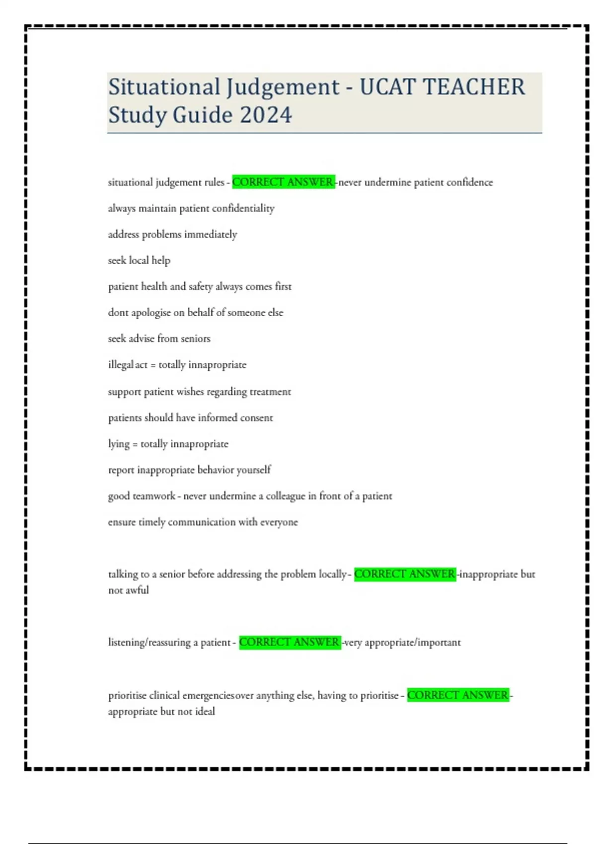 Situational Judgement - UCAT TEACHER Study Guide 2024