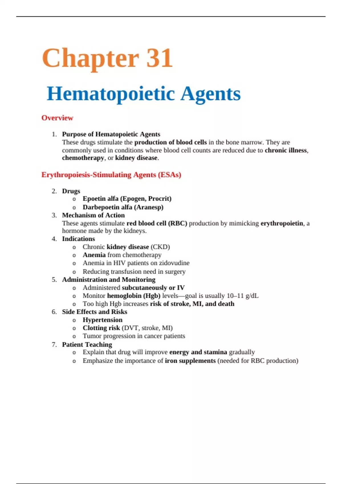 1. Purpose of Hematopoietic Agents