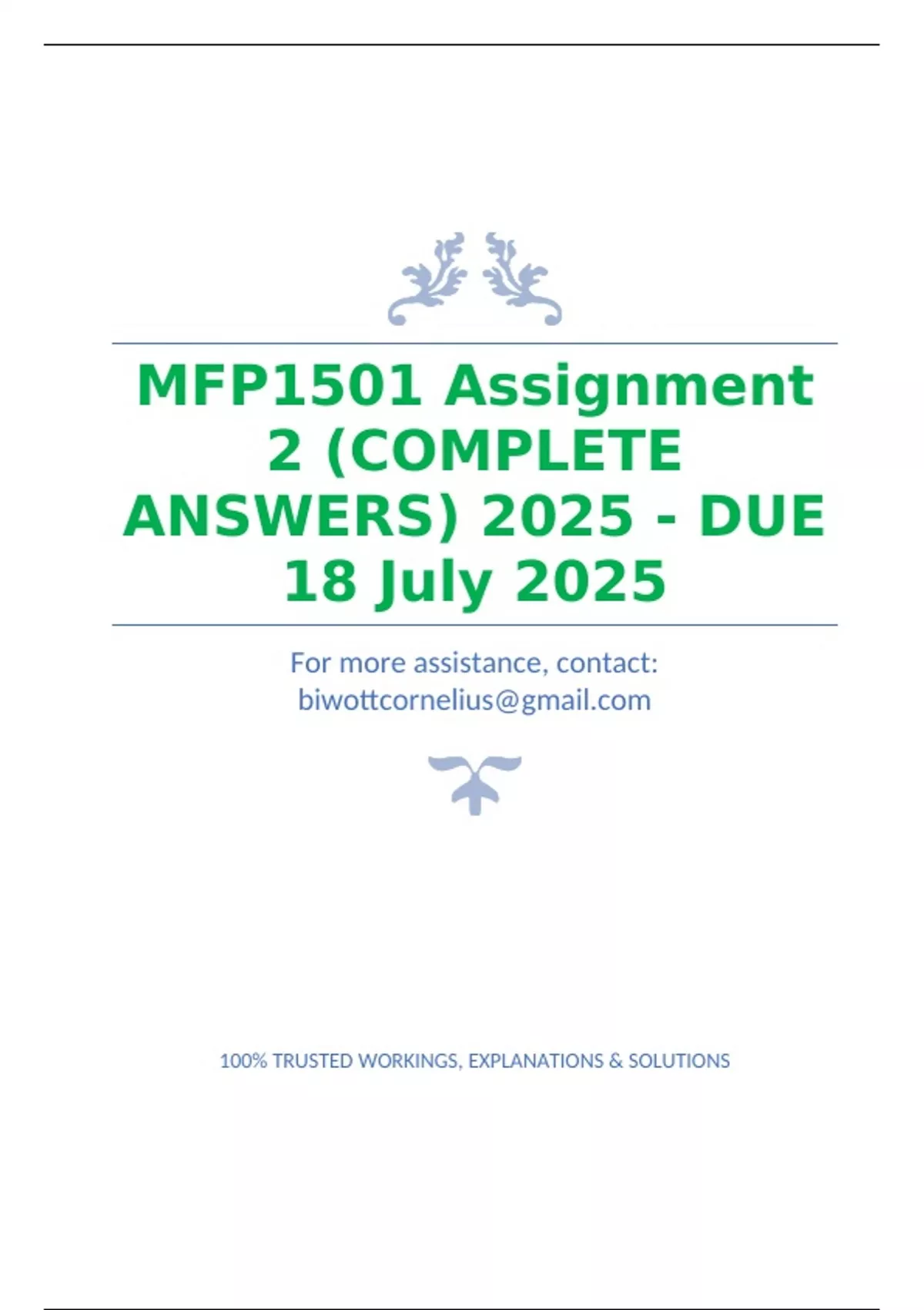 MFP1501 Assignment 2 (COMPLETE ANSWERS) 2025 - DUE 18 July 2025