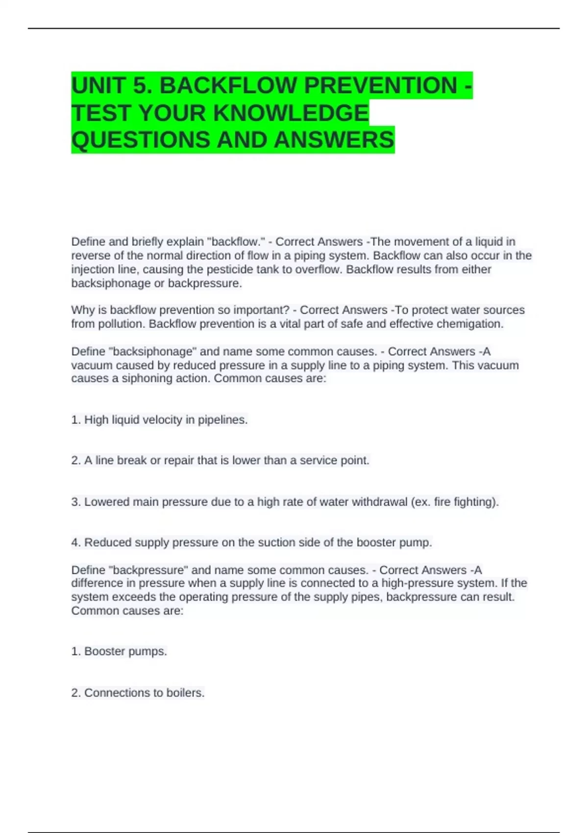 UNIT 5. BACKFLOW PREVENTION -