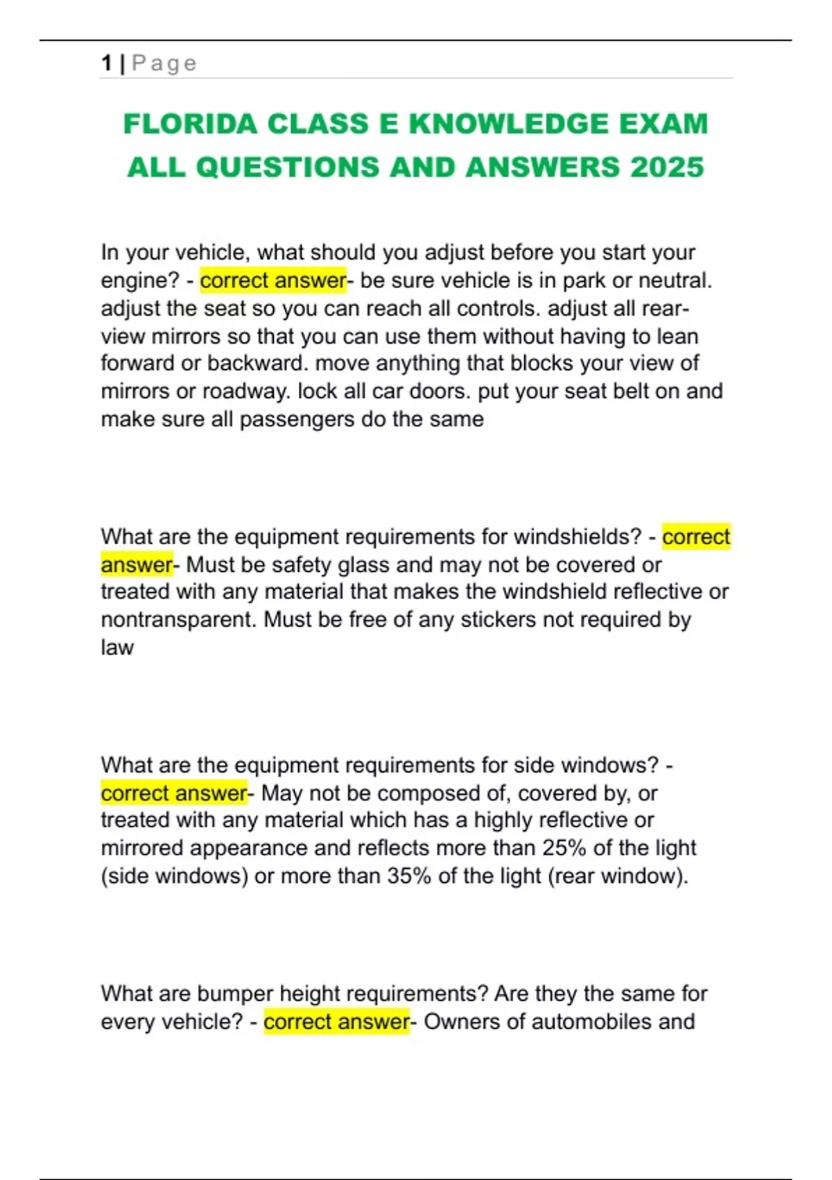 FLORIDA CLASS E KNOWLEDGE EXAM ALL QUESTIONS AND ANSWERS 2025