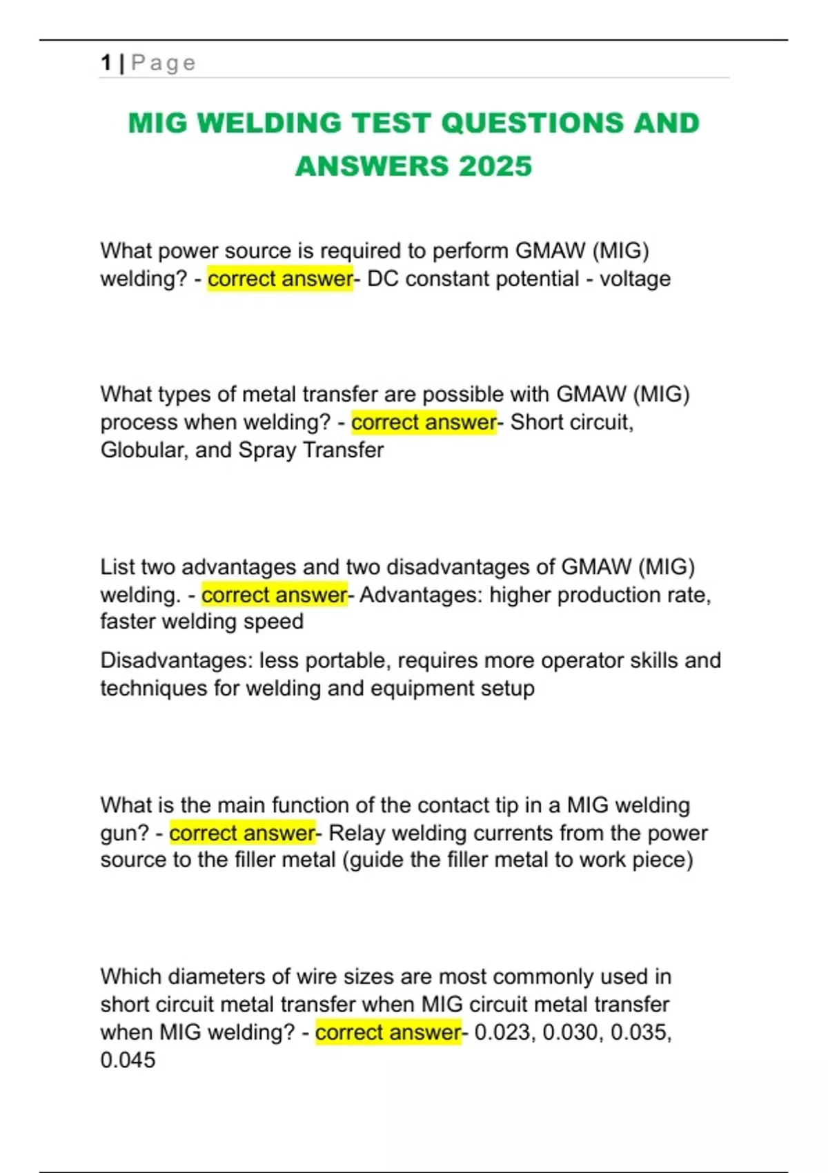 MIG WELDING TEST QUESTIONS AND