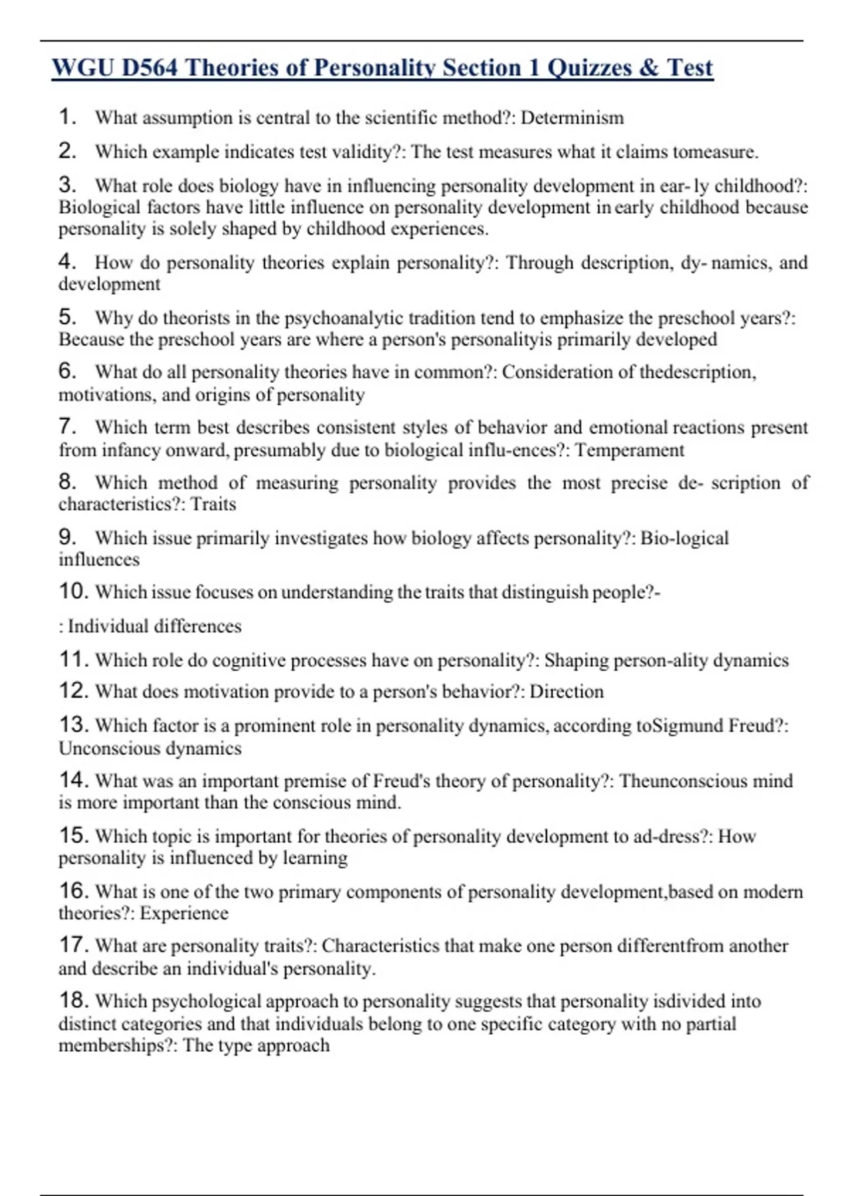 WGU D564 Theories of Personality Section 1 Quizzes & Test