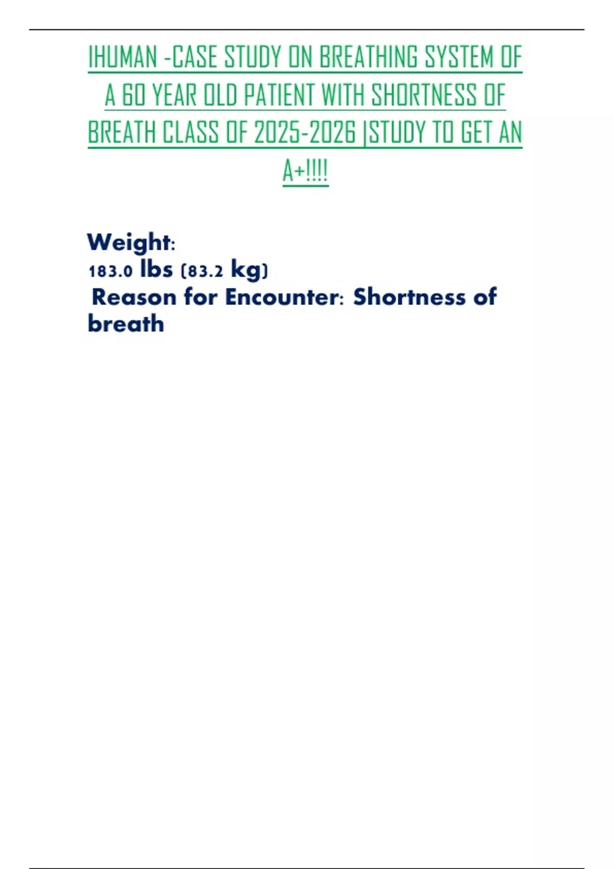 IHUMAN -CASE STUDY ON BREATHING SYSTEM OF A 60 YEAR OLD PATIENT WITH SHORTNESS OF BREATH CLASS OF |STUDY TO GET AN A+!!!!
