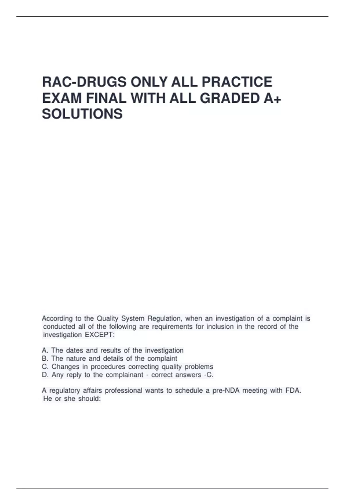 RAC-Drugs Only All Practice Exam Final with all graded A+ solutions