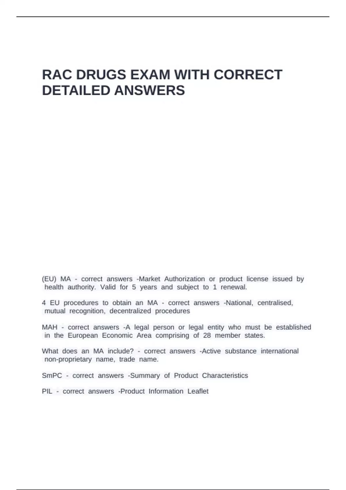 RAC DRUGS EXAM WITH CORRECT DETAILED ANSWERS