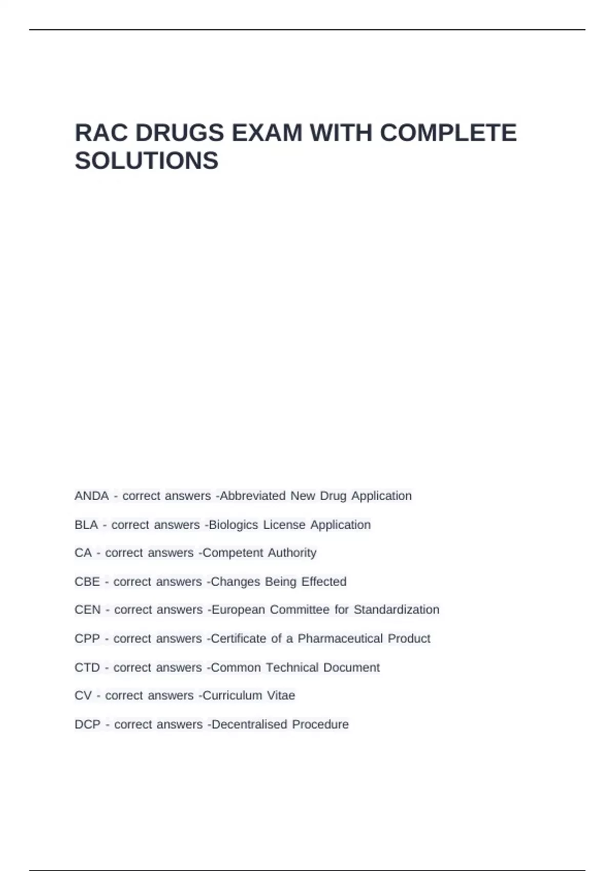 RAC DRUGS EXAM WITH COMPLETE SOLUTIONS
