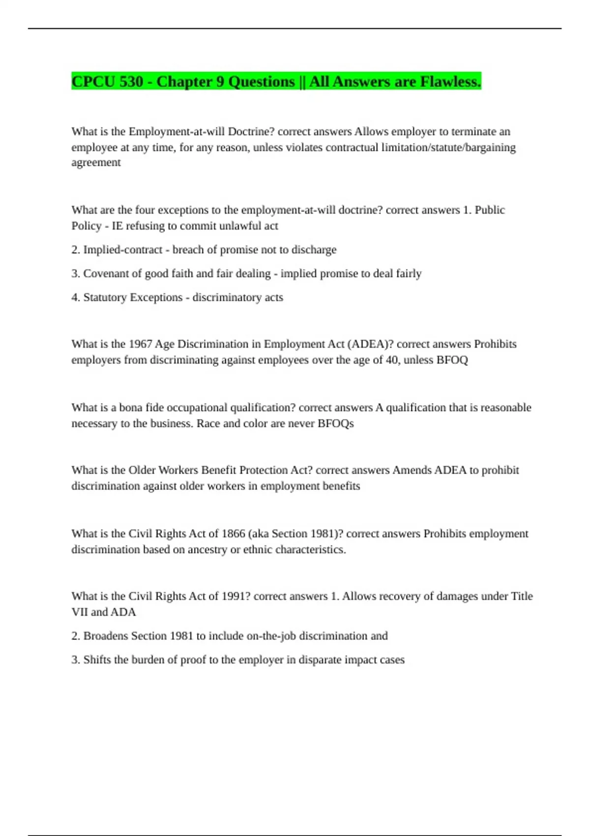 What is the Employment-at-will Doctrine? correct answers Allows employer to terminate an