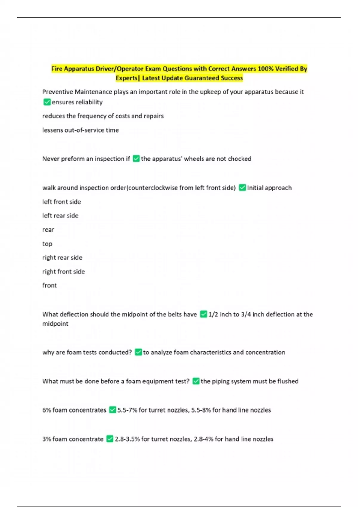 Fire Apparatus Driver/Operator Exam Questions with Correct Answers 100% Verified By Experts| Latest Update Guaranteed Success