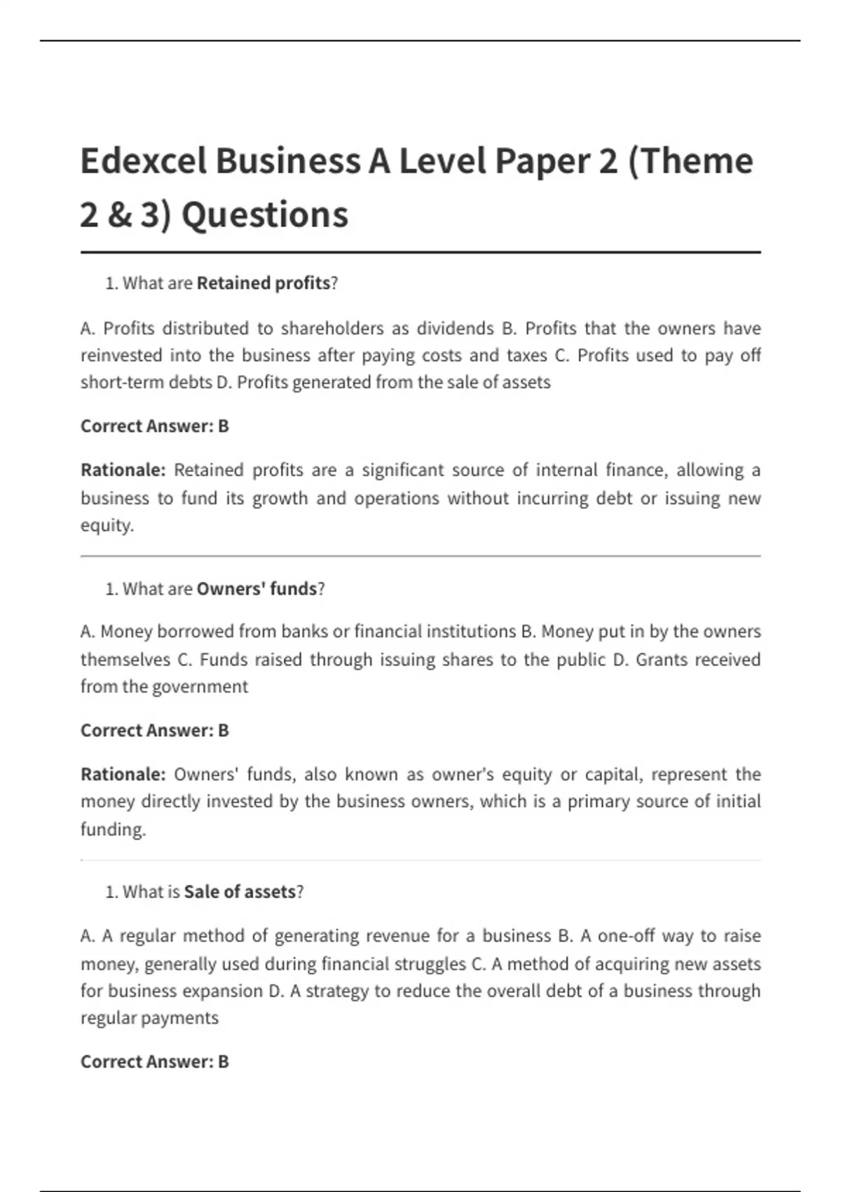 Edexcel Business A Level Paper 2 (Theme 2 & 3) Questions