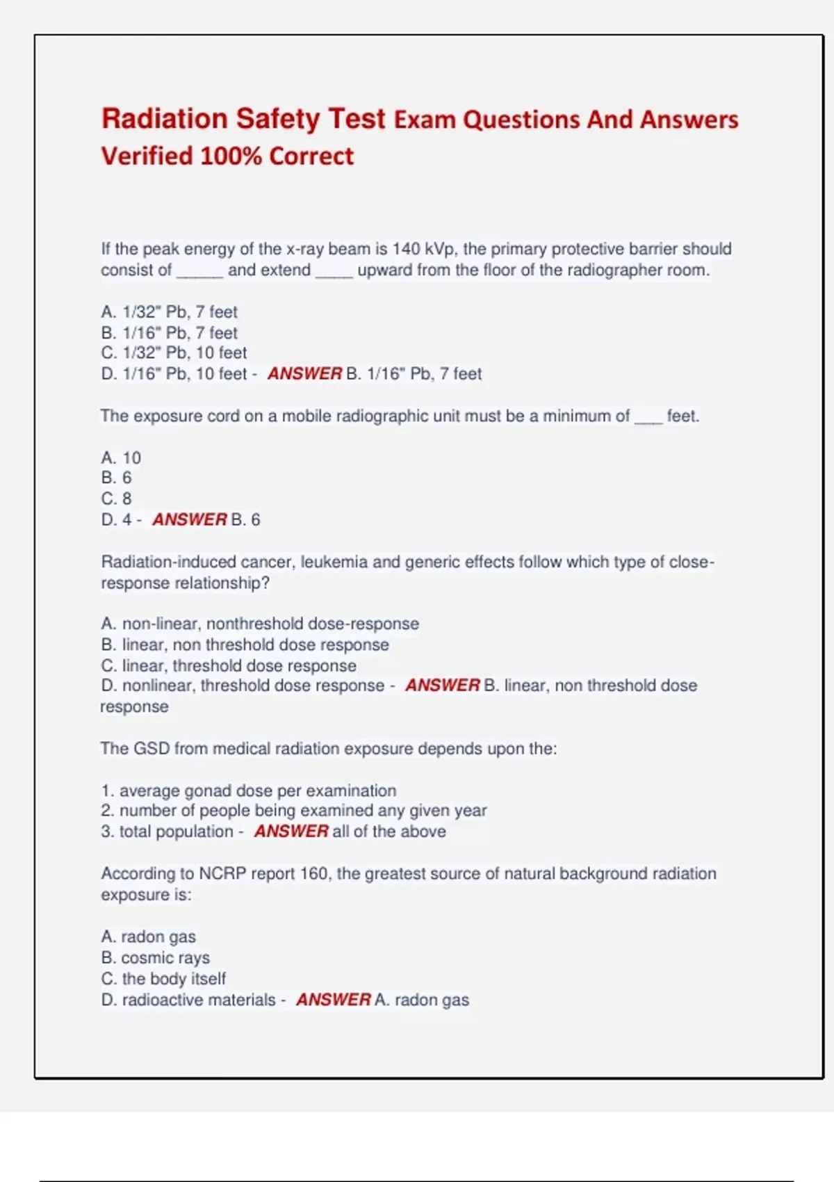 D. nonlinear, threshold dose response - ANSWER B. linear, non threshold dose