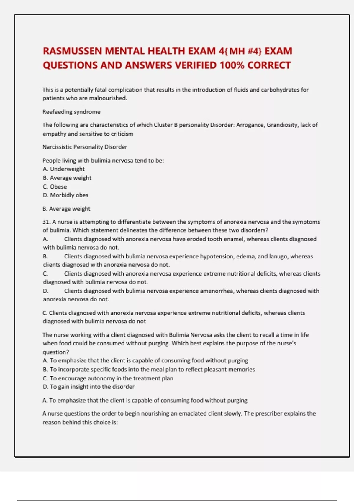 QUESTIONS AND ANSWERS VERIFIED 100% CORRECT