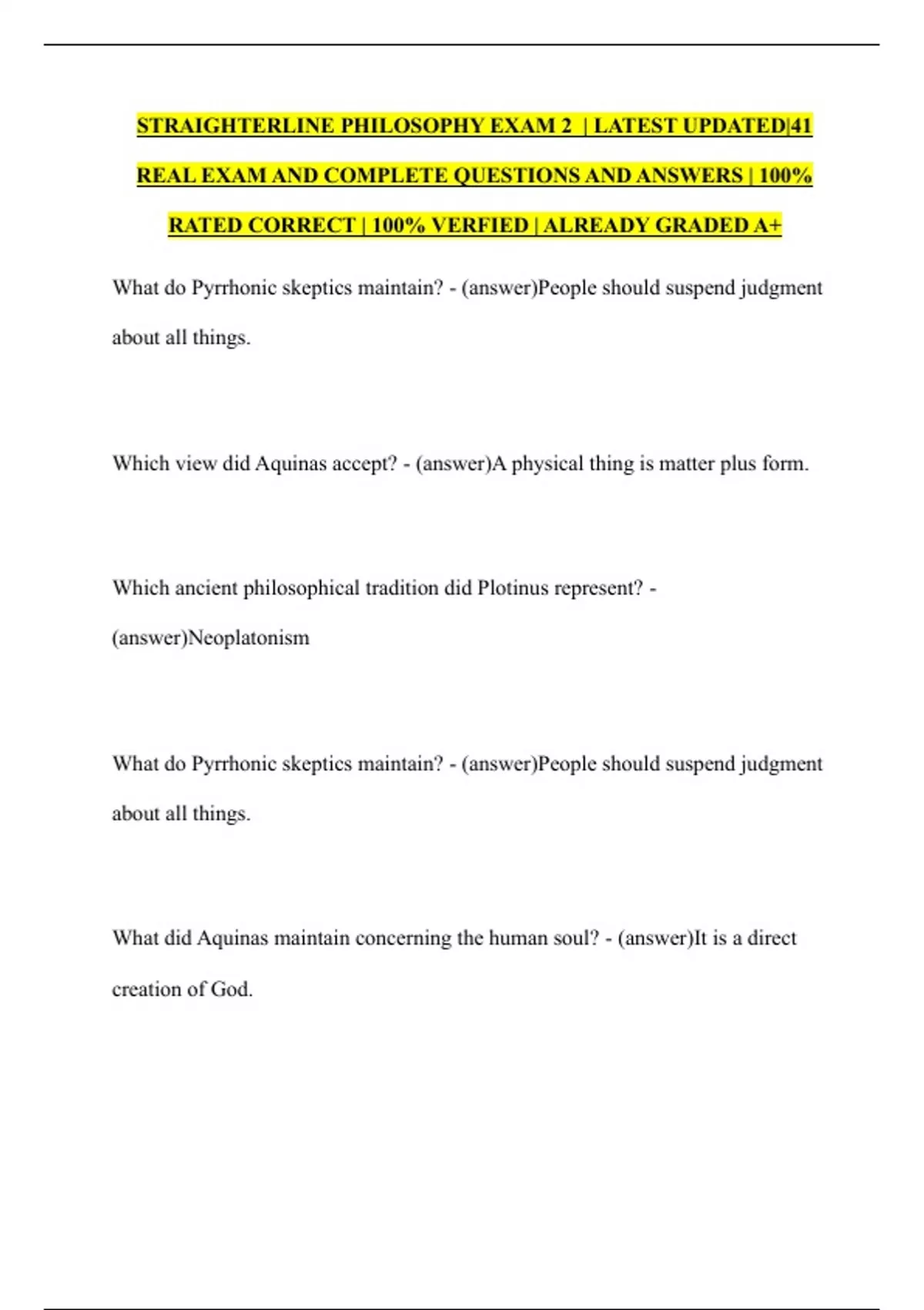 STRAIGHTERLINE PHILOSOPHY EXAM 2 | LATEST UPDATED|41 REAL EXAM AND COMPLETE QUESTIONS AND ANSWERS | 100% RATED CORRECT | 100% VERFIED | ALREADY GRADED A+