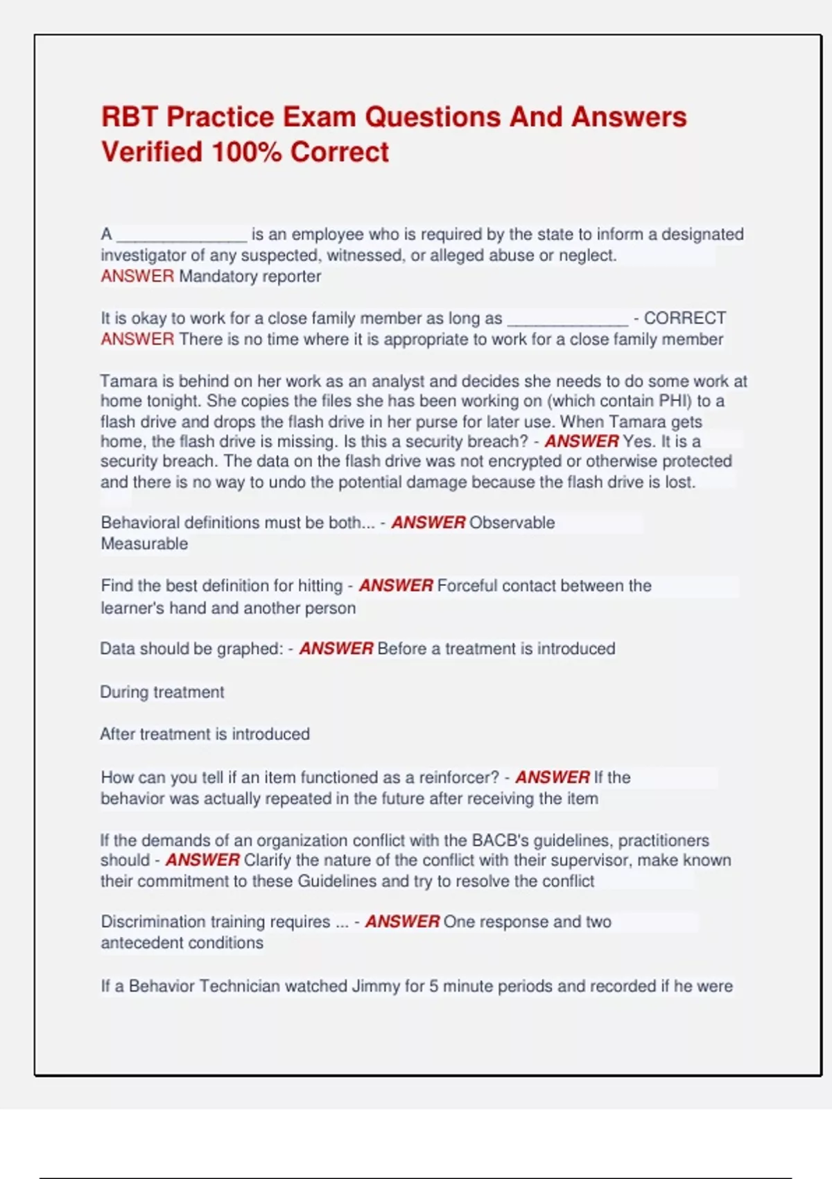 RBT Practice Exam Questions And Answers Verified 100% Correct