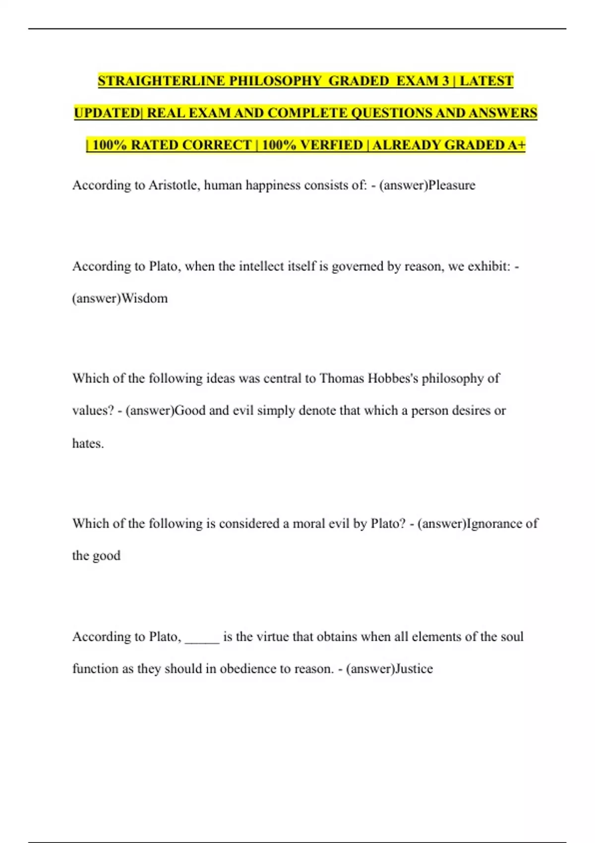 STRAIGHTERLINE PHILOSOPHY GRADED EXAM 3 | LATEST UPDATED| REAL EXAM AND COMPLETE QUESTIONS AND ANSWERS | 100% RATED CORRECT | 100% VERFIED | ALREADY GRADED A+