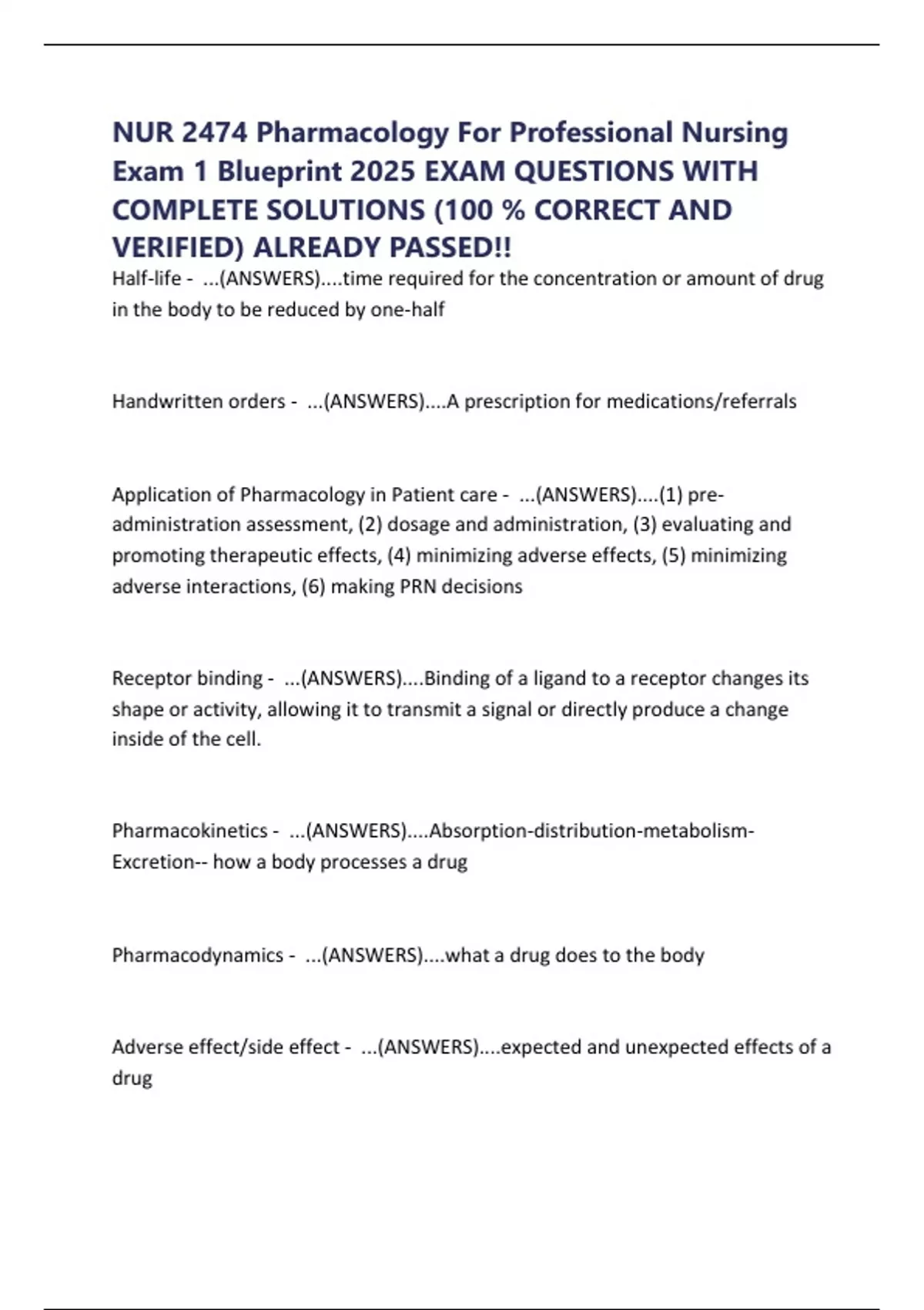 Application of Pharmacology in Patient care - ...(ANSWERS)....(1) pre-