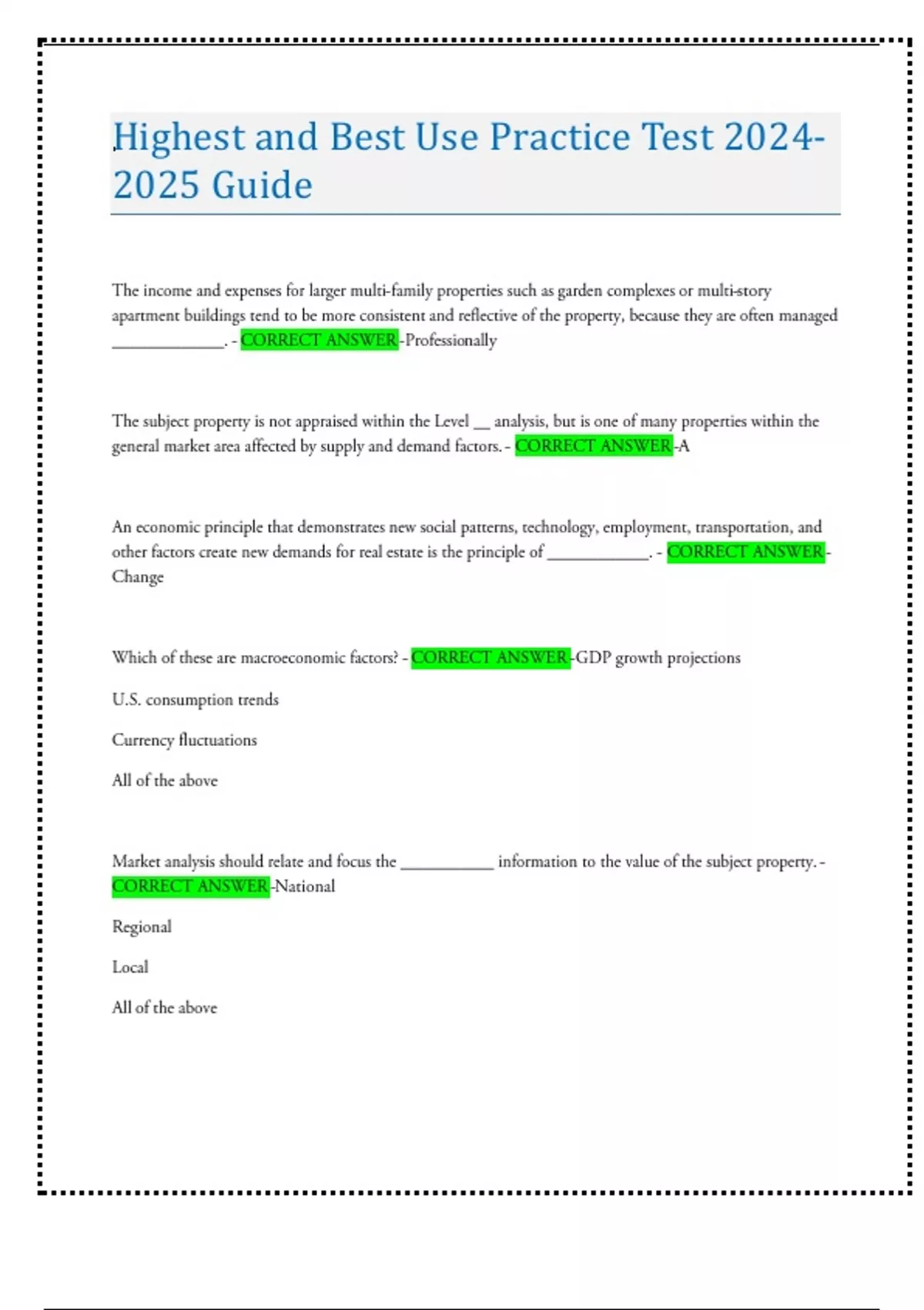 Highest and Best Use Practice Test Guide