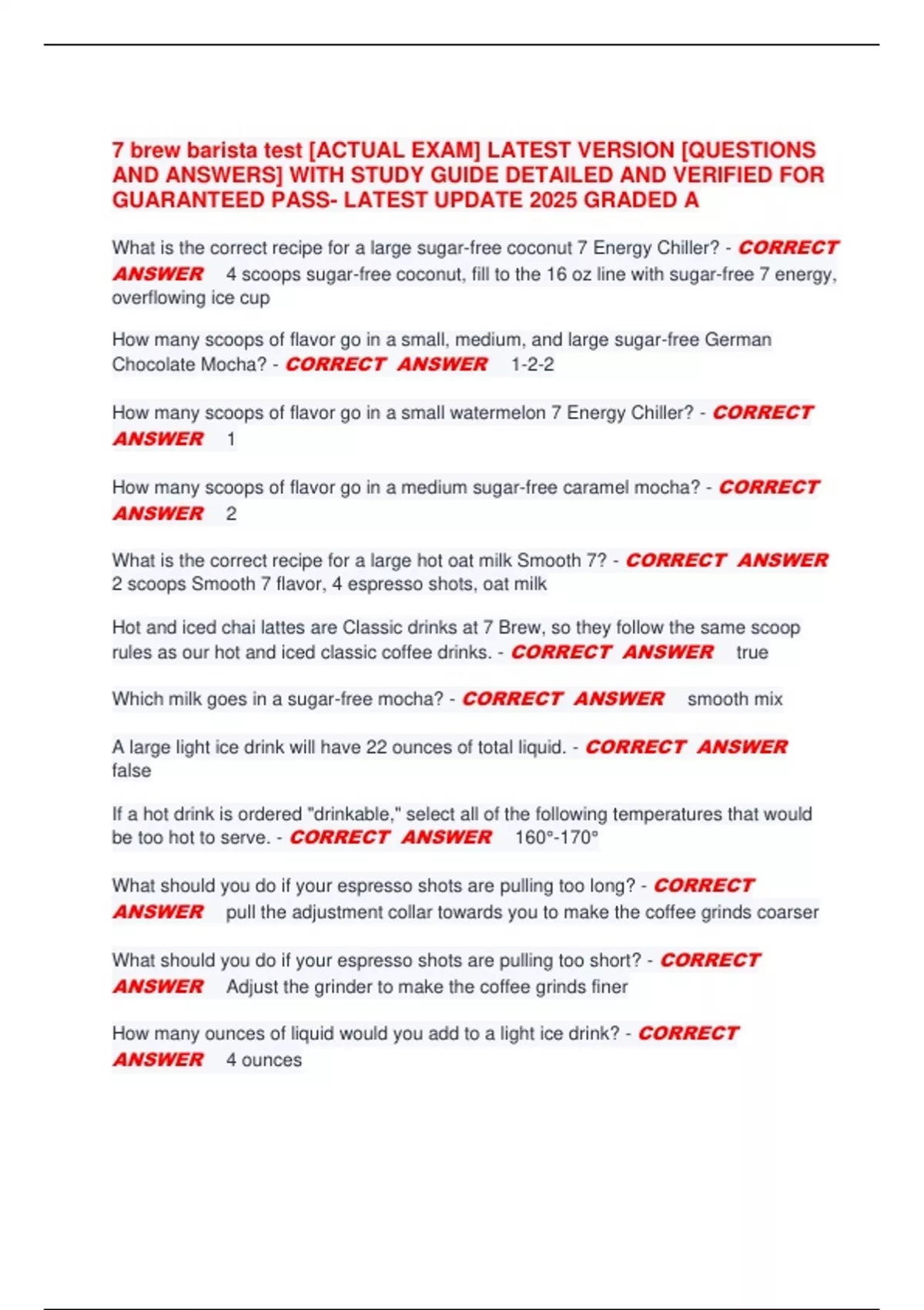 7 brew barista test [ACTUAL EXAM] LATEST VERSION [QUESTIONS AND ANSWERS] WITH STUDY GUIDE DETAILED AND VERIFIED FOR GUARANTEED PASS- LATEST UPDATE 2025 GRADED A