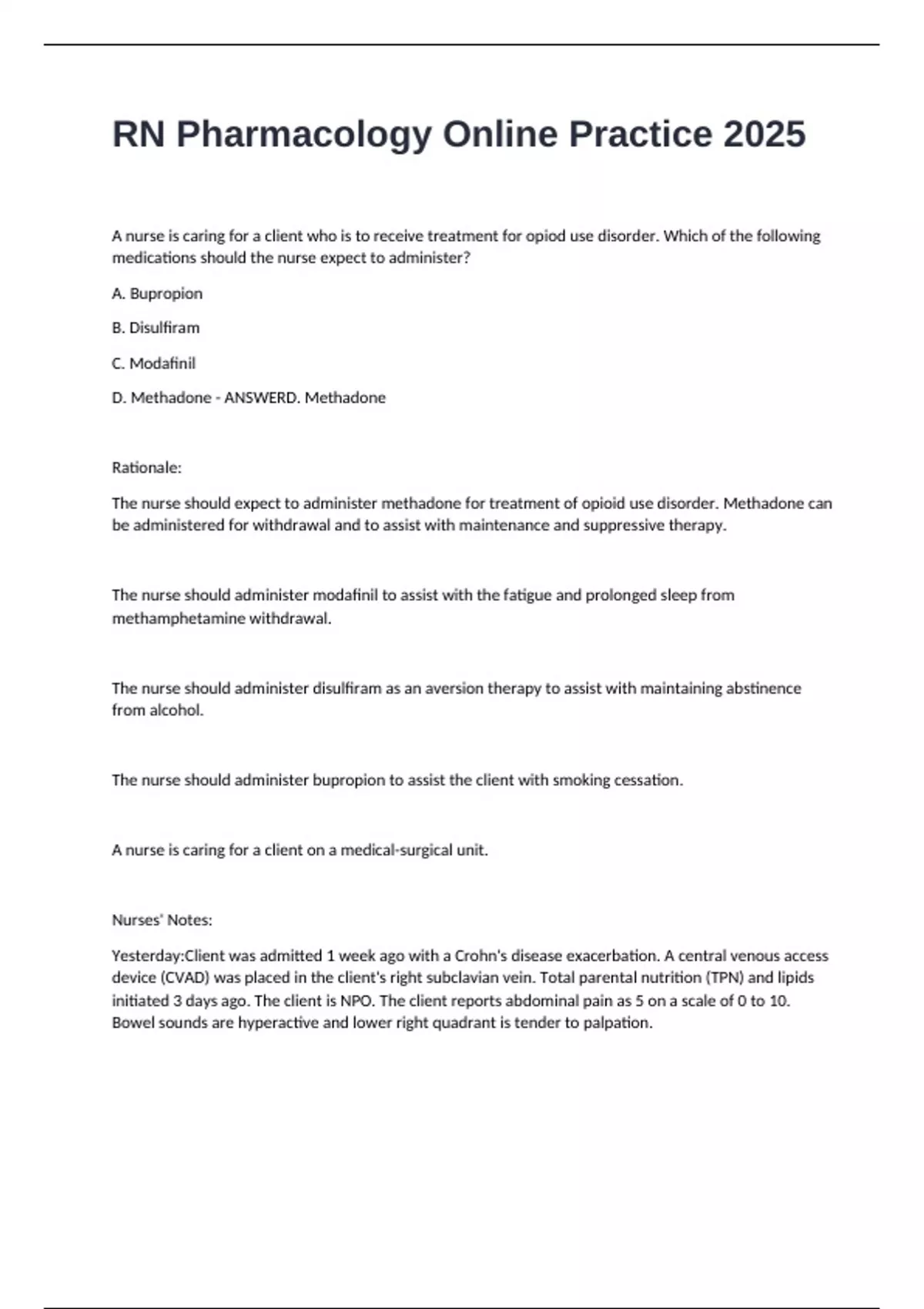A nurse is caring for a client who is to receive treatment for opiod use disorder. Which of the following