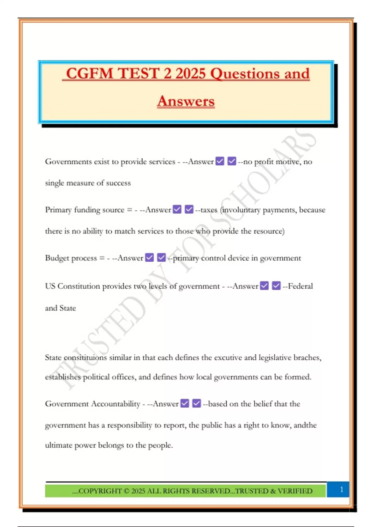 CGFM TEST 2 2025 Questions and