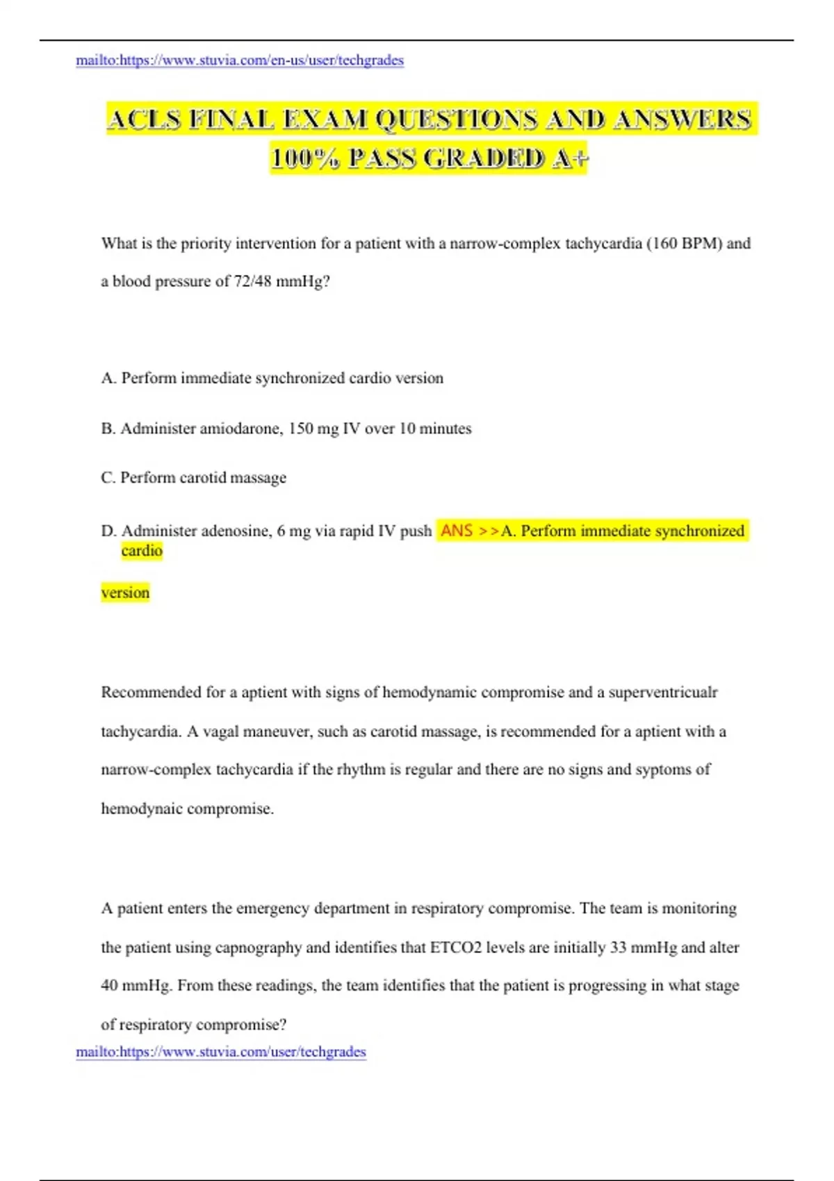 ACLS FINAL EXAM QUESTIONS AND ANSWERS