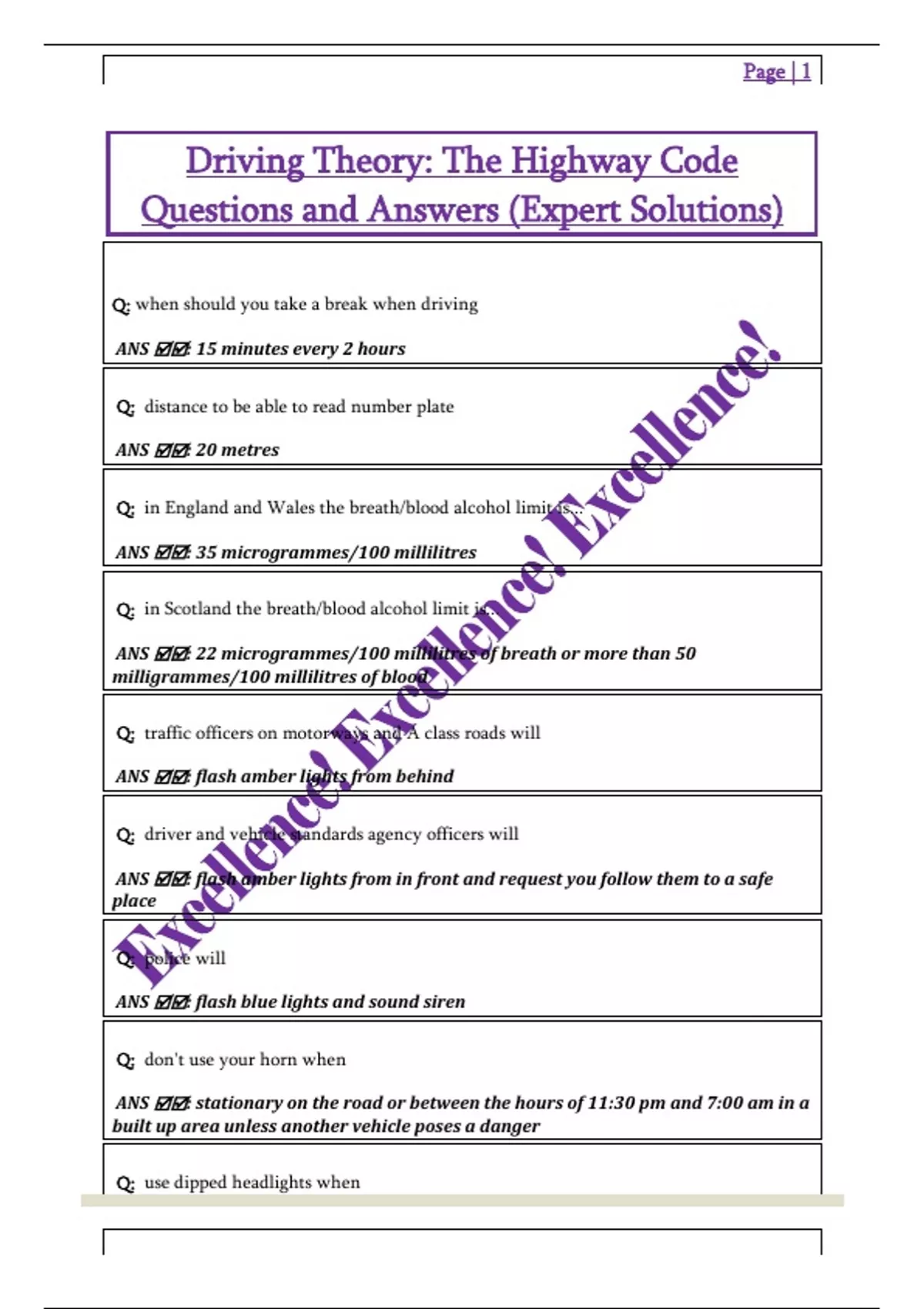 Driving Theory: The Highway Code Questions and Answers (Expert Solutions)