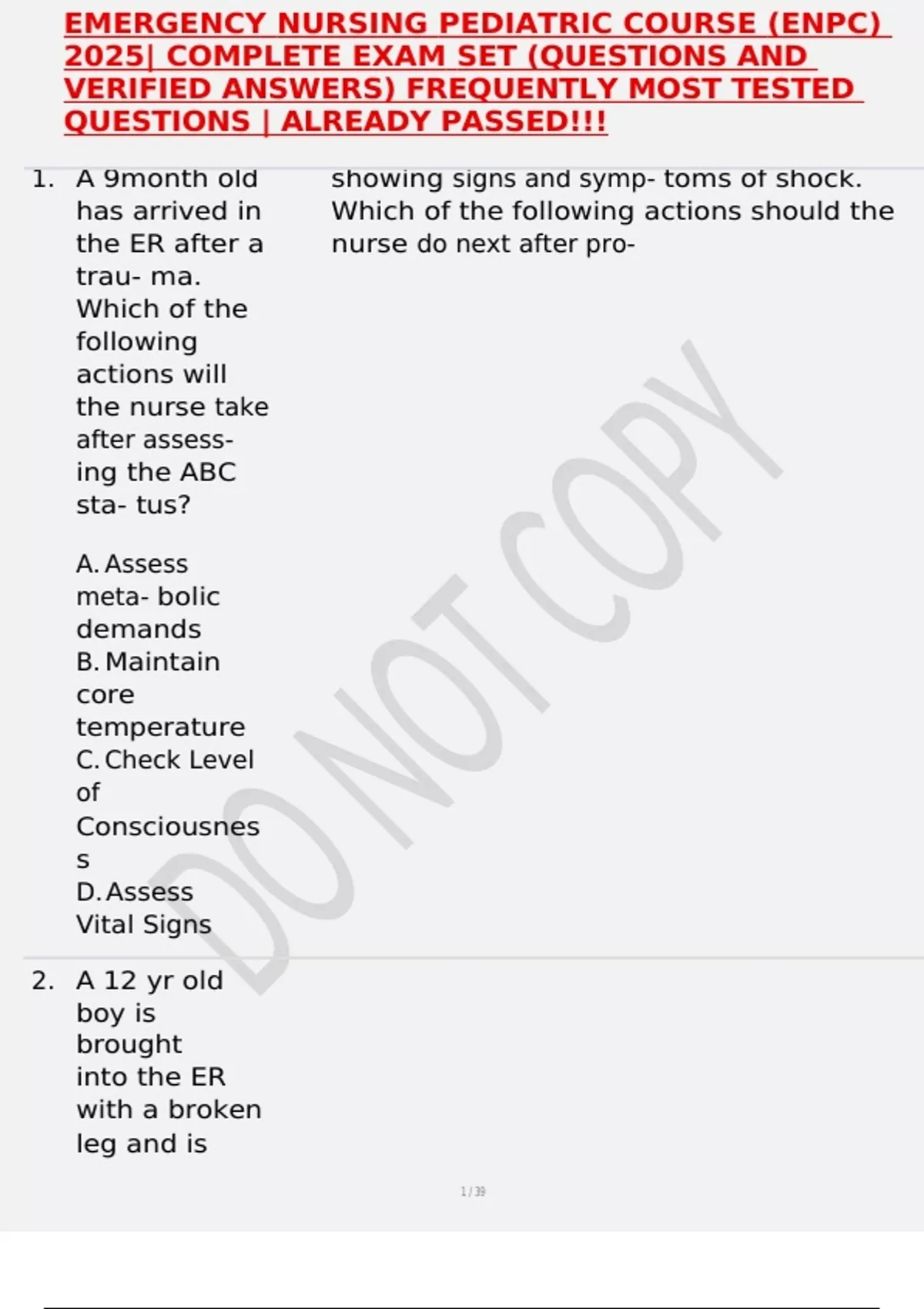 1. A 9month old showing signs and symp- toms of shock.