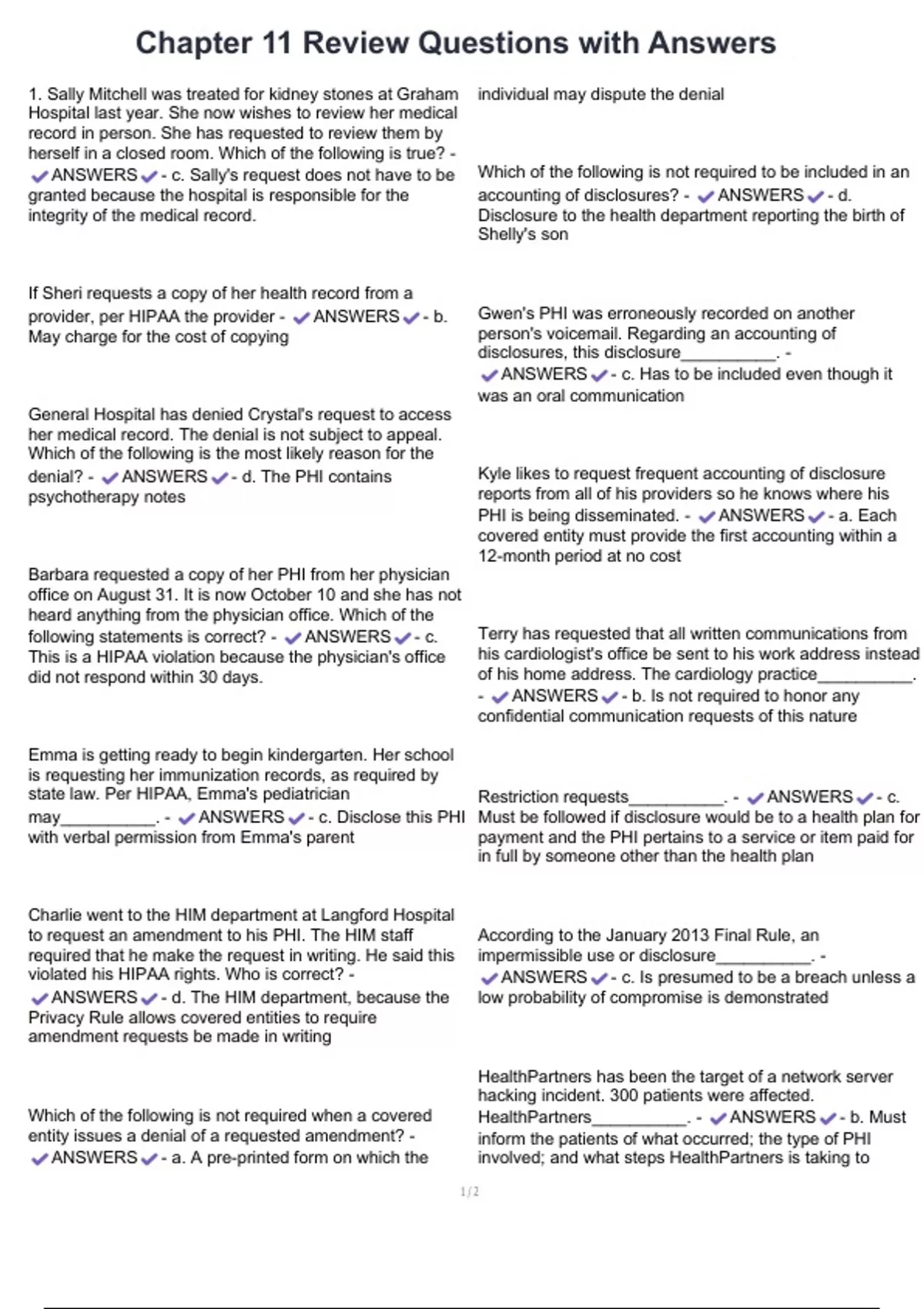 PHI is being disseminated. - ANSWERS - a. Each