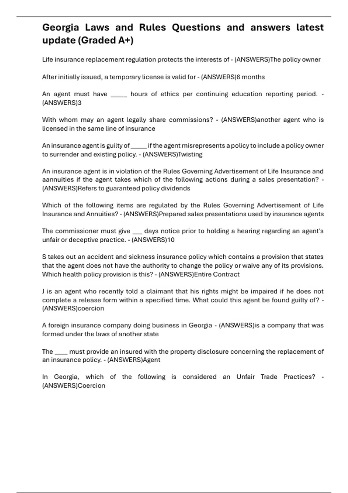 Georgia Laws and Rules Questions and answers latest update (Graded A+)