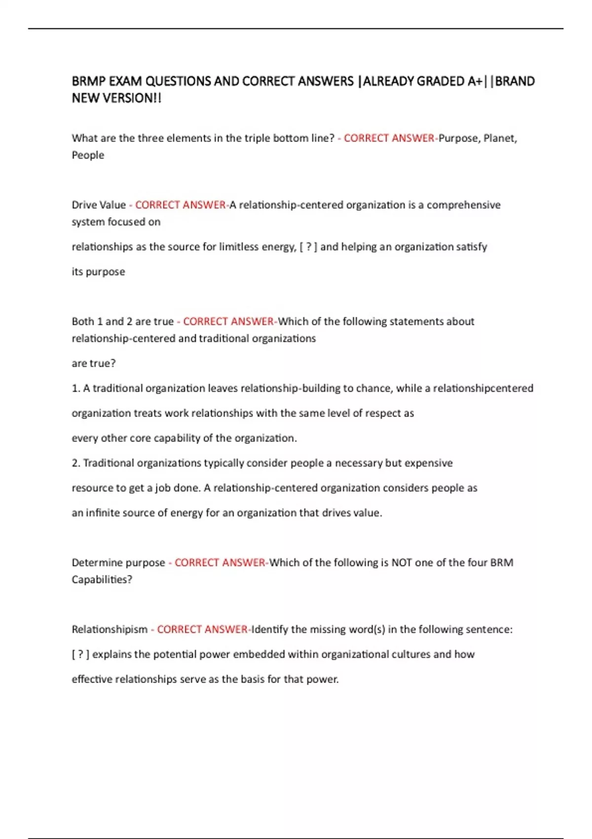 BRMP EXAM QUESTIONS AND CORRECT ANSWERS |ALREADY GRADED A+||BRAND