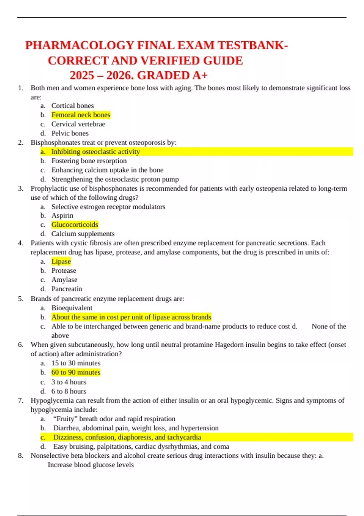 TEST BANK FOR PHARMACOLOGY FINAL EXAM CORRECT AND VERIFIED GUIDE 2025 – 2026. GRADED A+