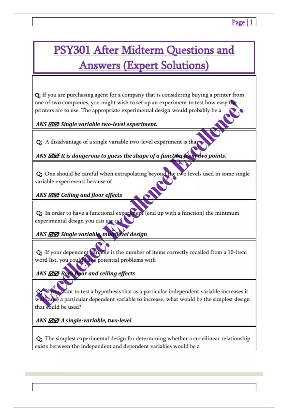 PSY301 After Midterm Questions and Answers (Expert Solutions)