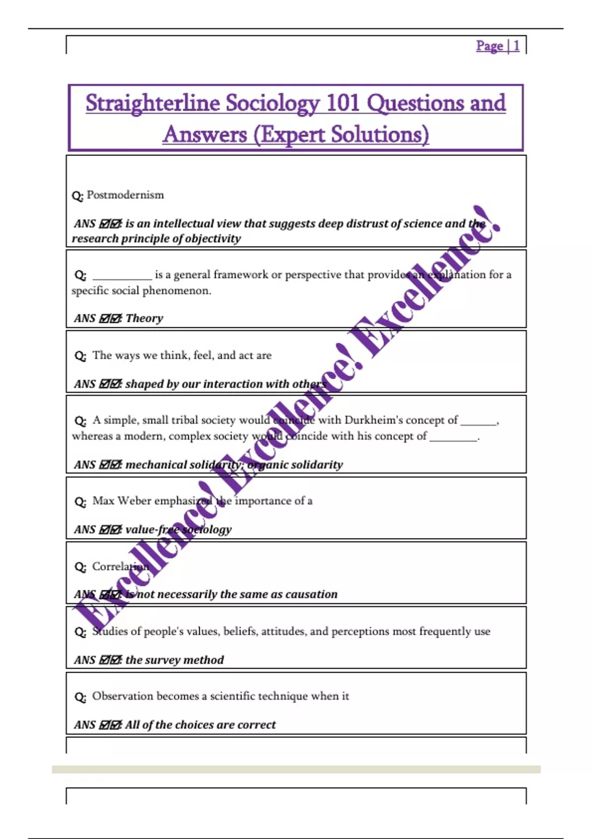 Straighterline Sociology 101 Questions and