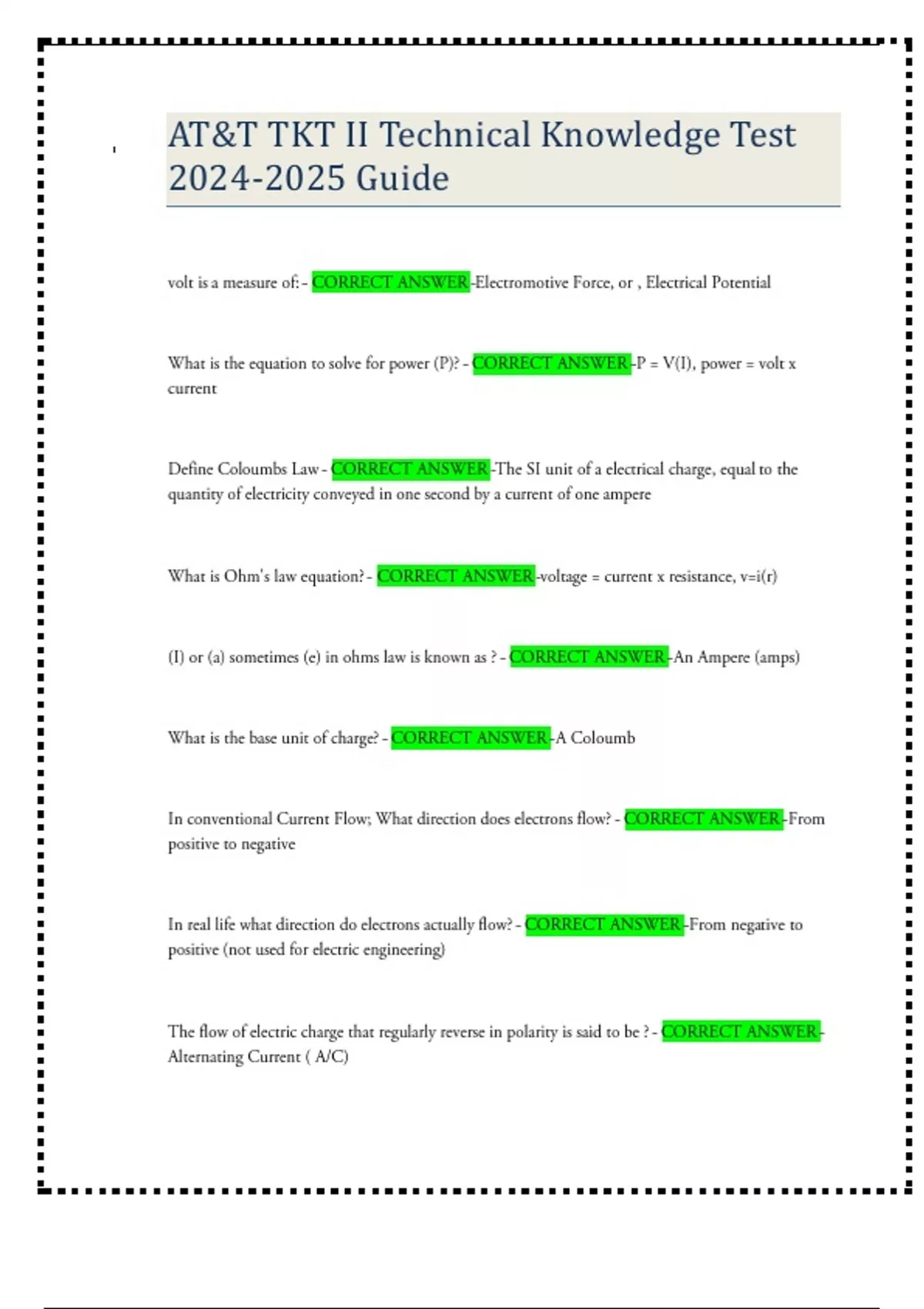 att tkt ii technical knowledge test
