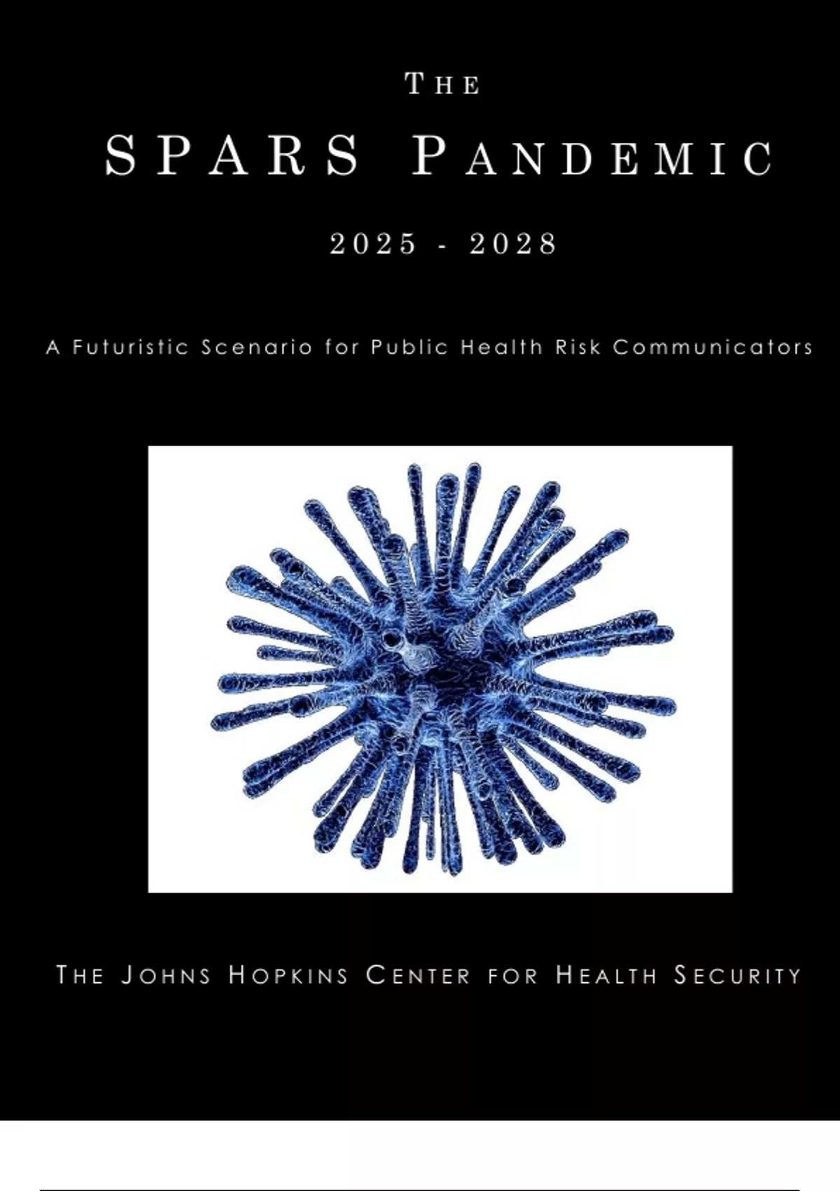 The SPARS Pandemic 2025–2028 – A Futuristic Scenario for Public Health Risk Communications (Johns Hopkins Center for Health Security)The SPARS Pandemic 2025–2028 – A Futuristic Scenario for Public Health Risk Communications (Johns Hopkins Center for Healt