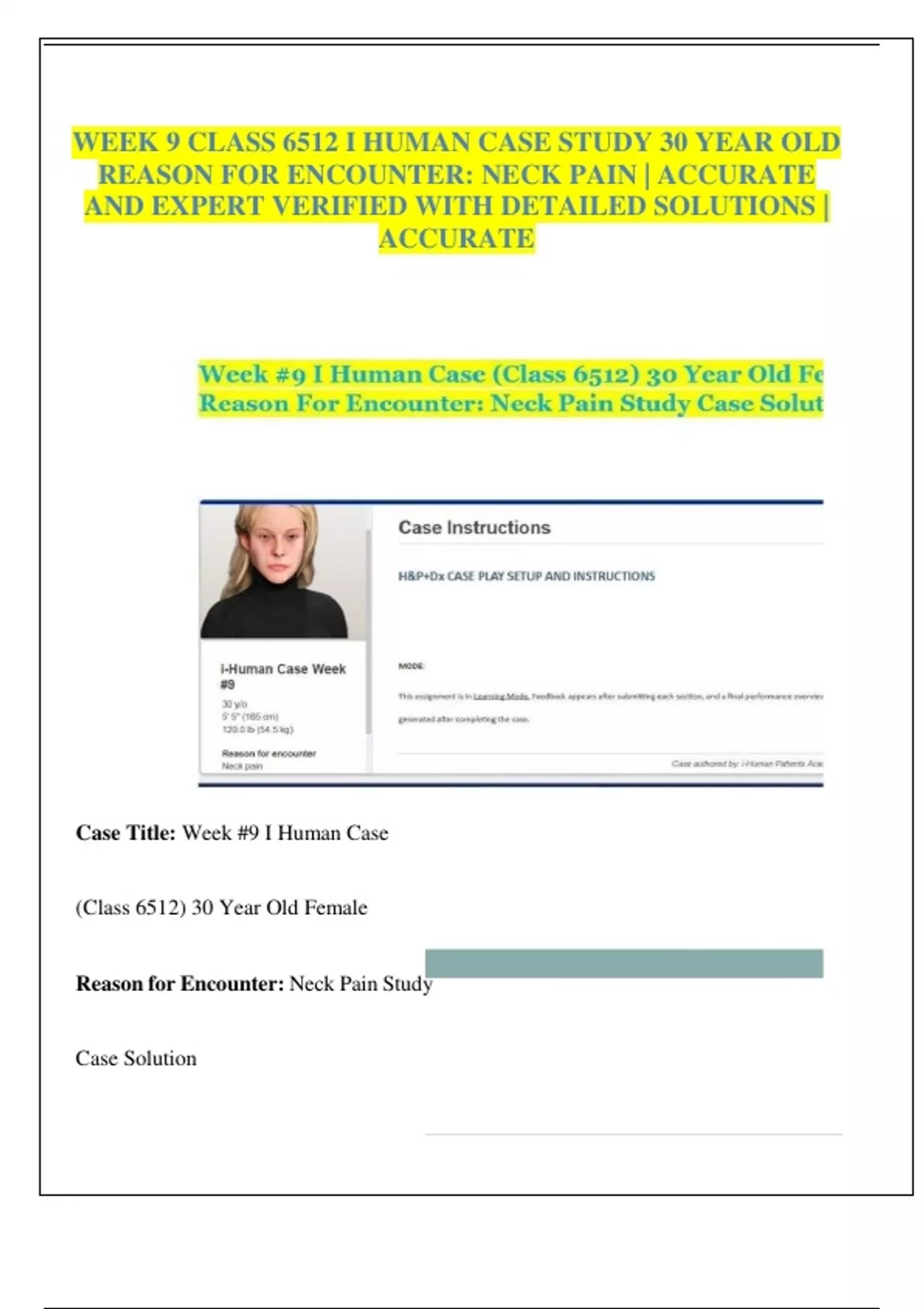 "30-Year-Old Female with Neck Pain: i-Human Case Study Analysis & Treatment Plan"