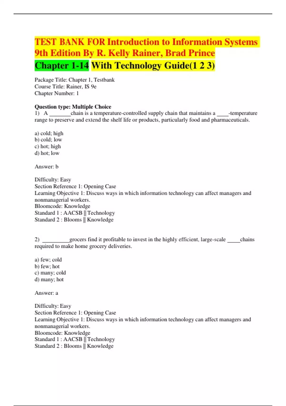 Package Title: Chapter 1, Testbank