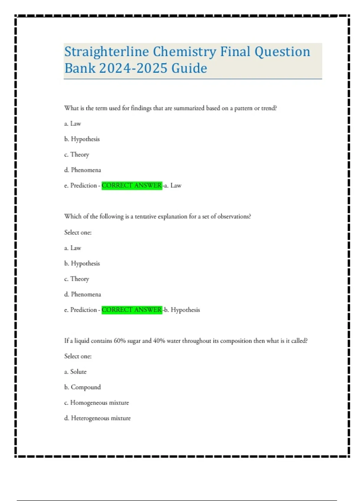 Straighterline Chemistry Final Question Bank Guide