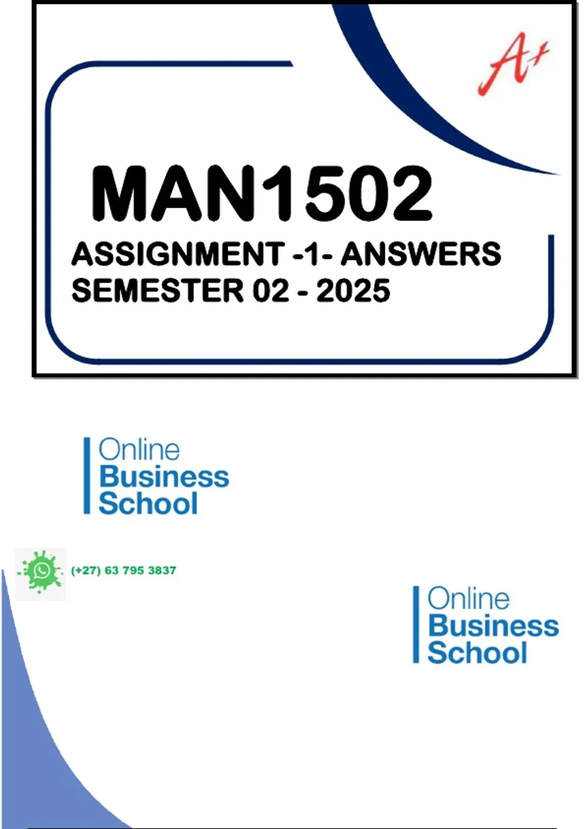 MAN1502 - Assignment 1 (Solutions & Questions) Semester 02 - 2025