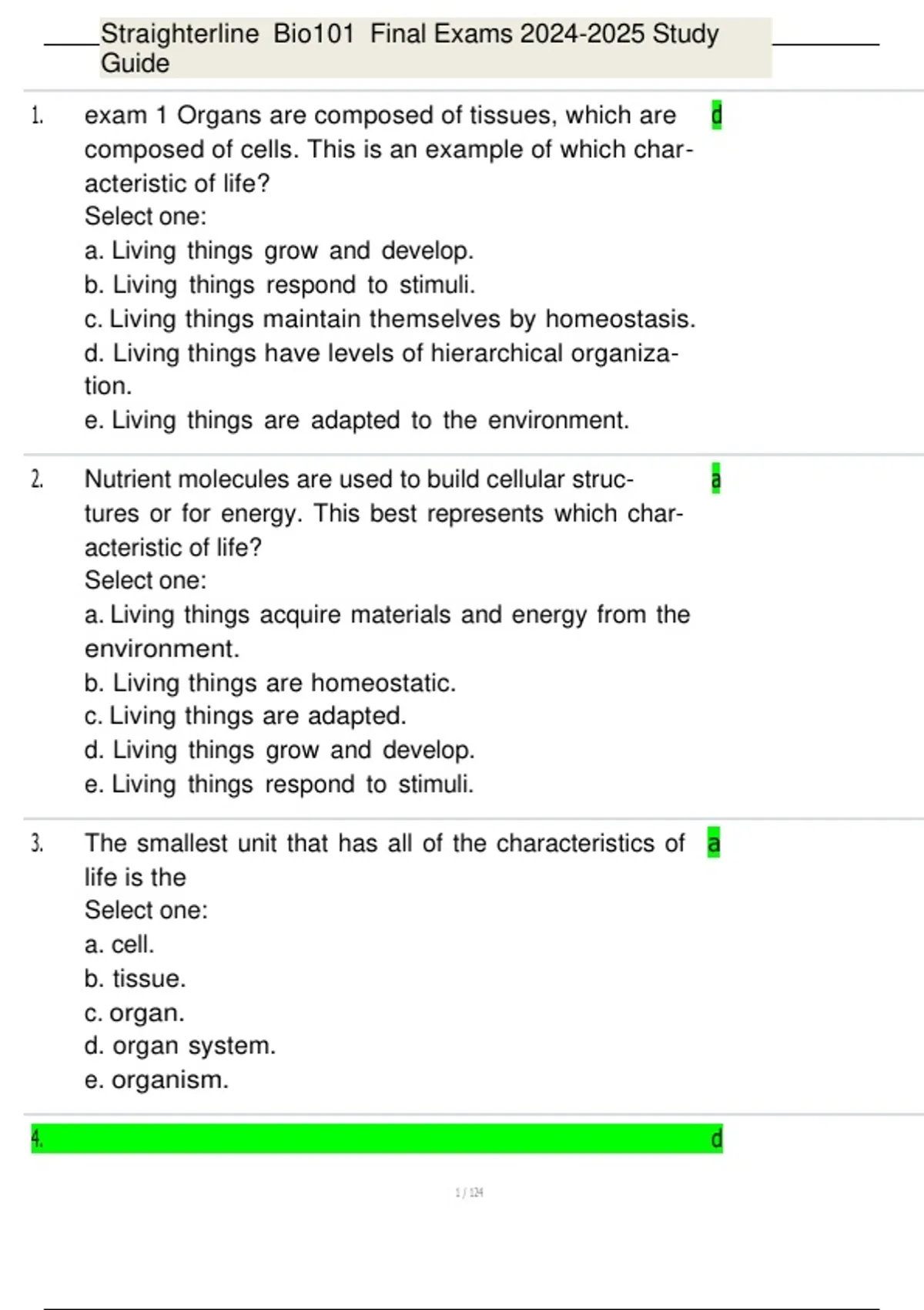 , Straighterline Bio101 Final Exams 2024-2025 Study