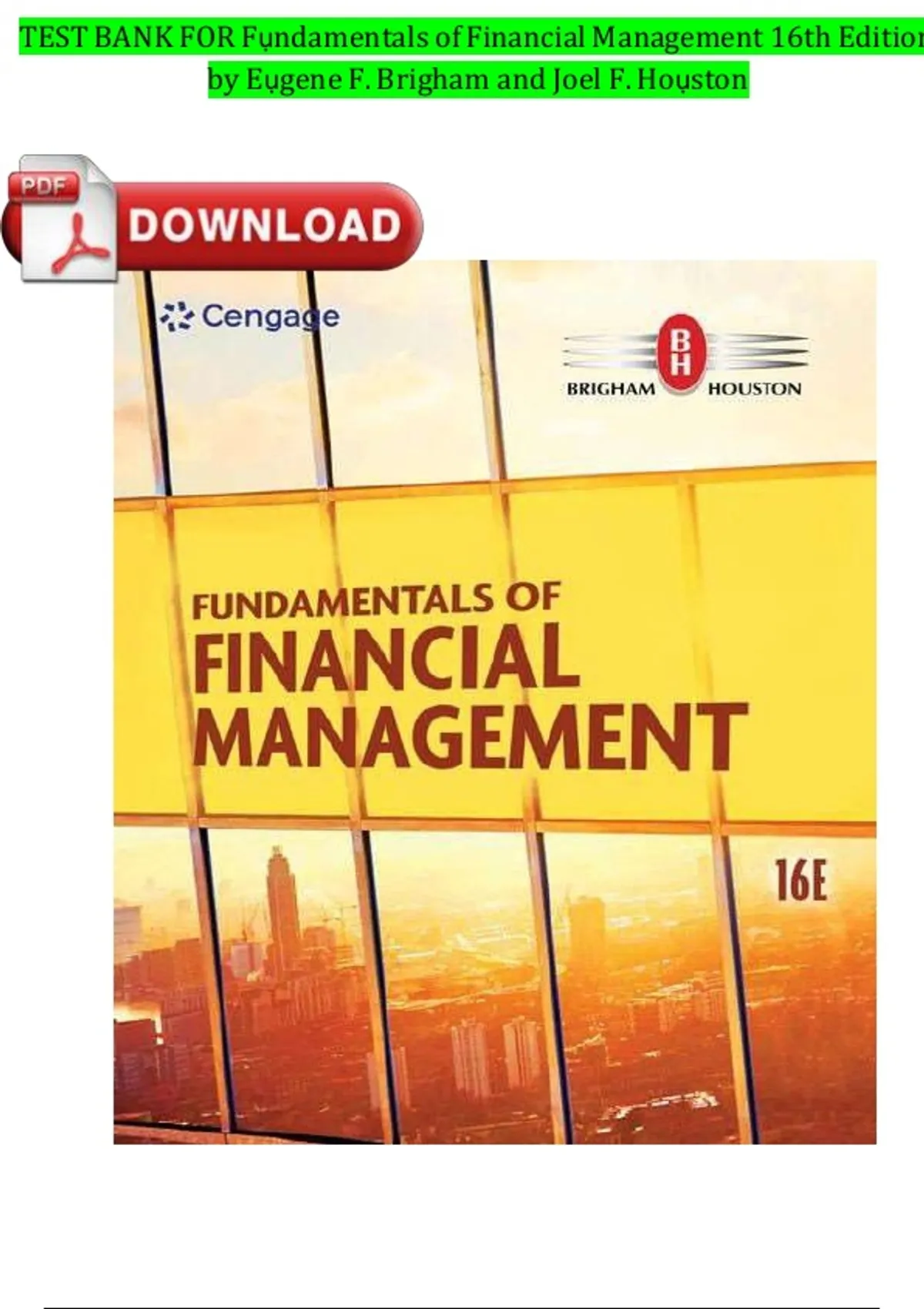 Test Bank for Fundamentals of Financial Management, 16th Edition by Eugene F. Brigham