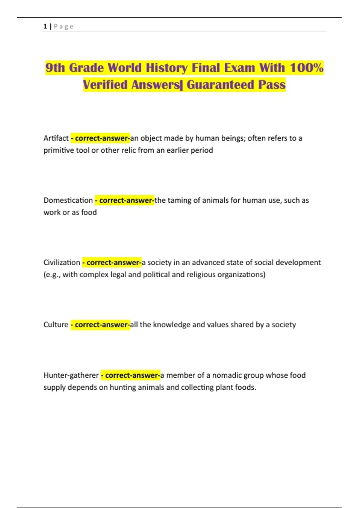 9th Grade World History Final Exam With 100%